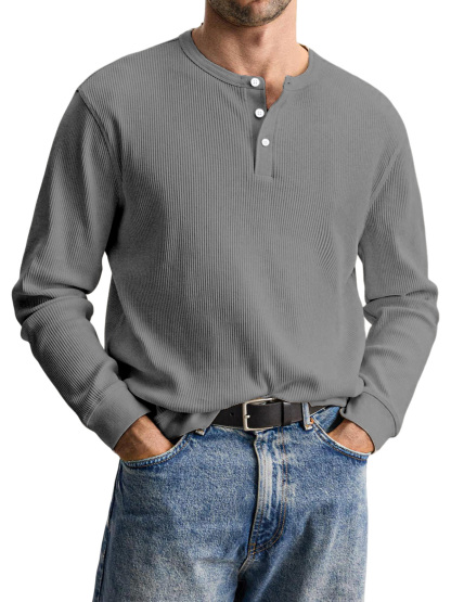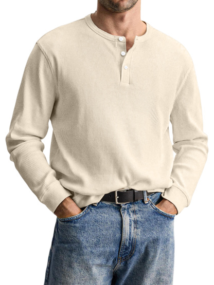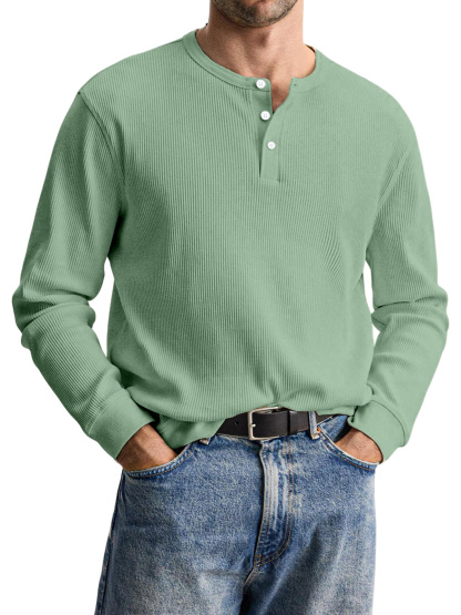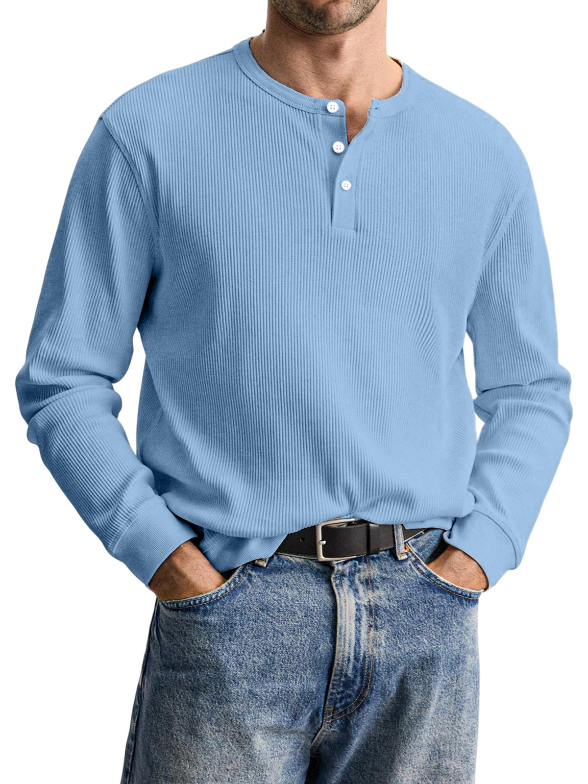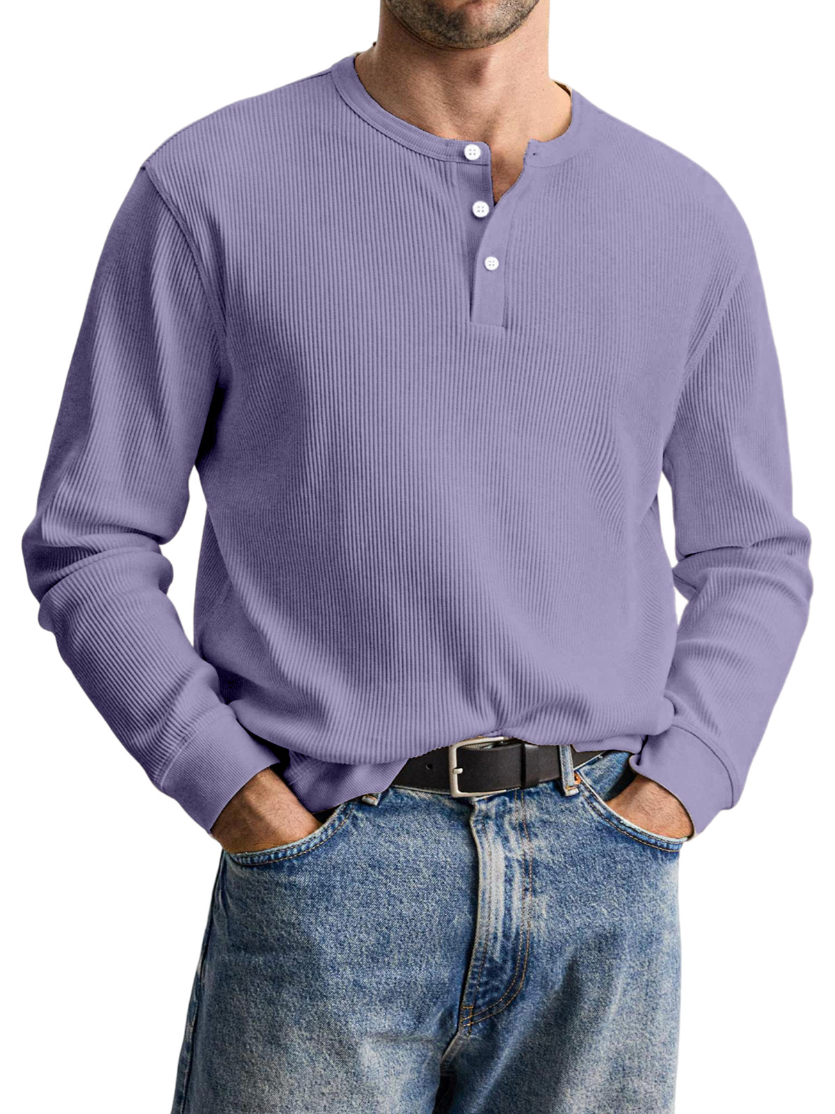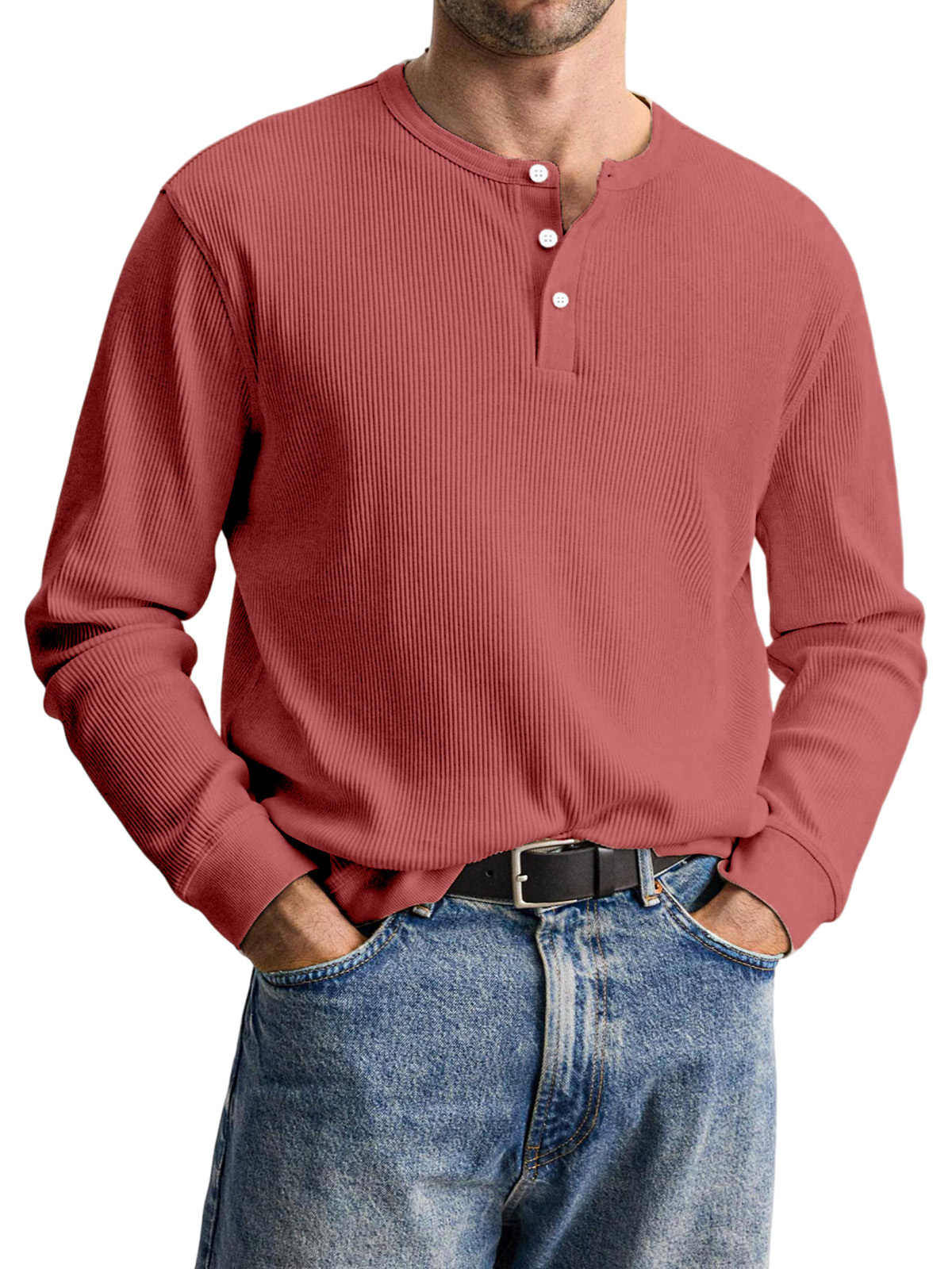Men's Daily Solid Color Pit Long Sleeve Henley Shirt