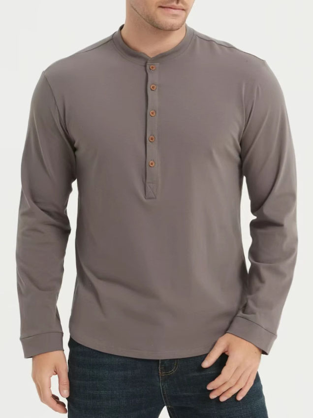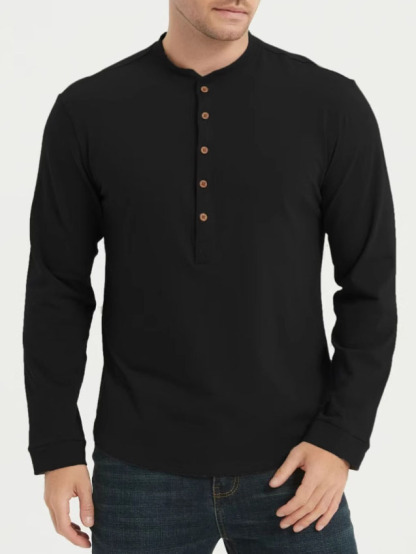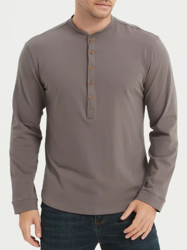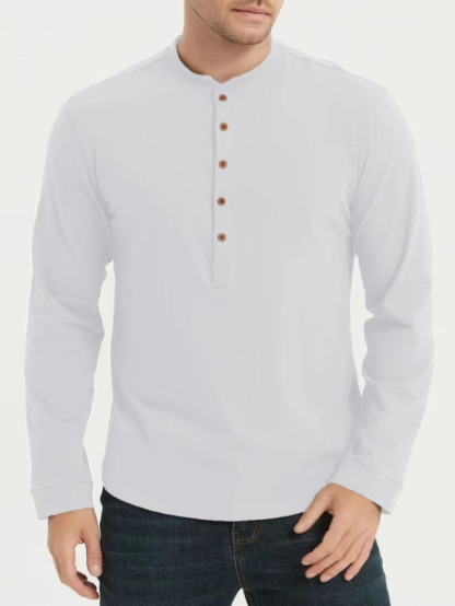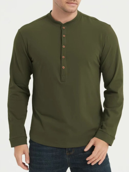 Men's Fashion Solid Color Button Stand-up Collar Henley Shirt
