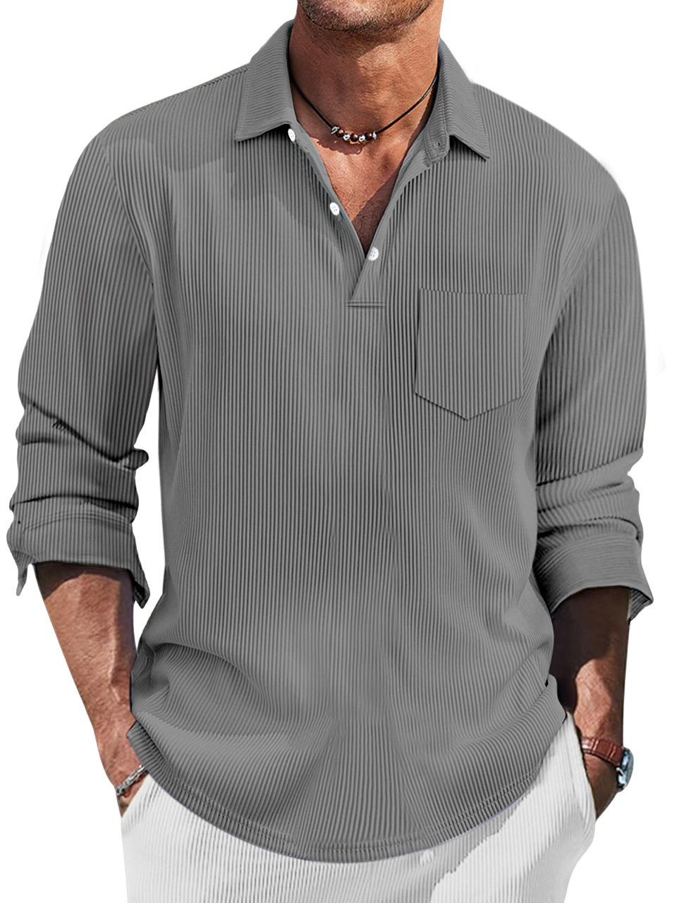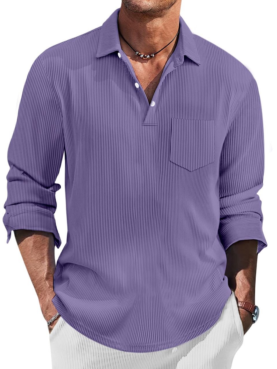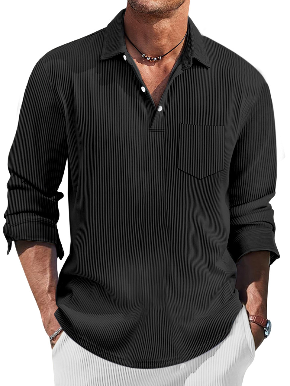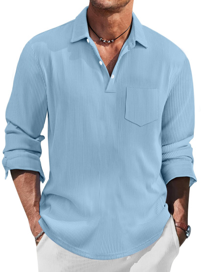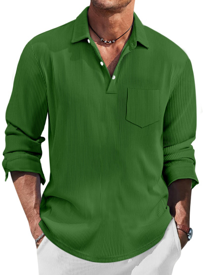 Men's Simple Solid Color Pit Lapel Button-up Polo Shirt