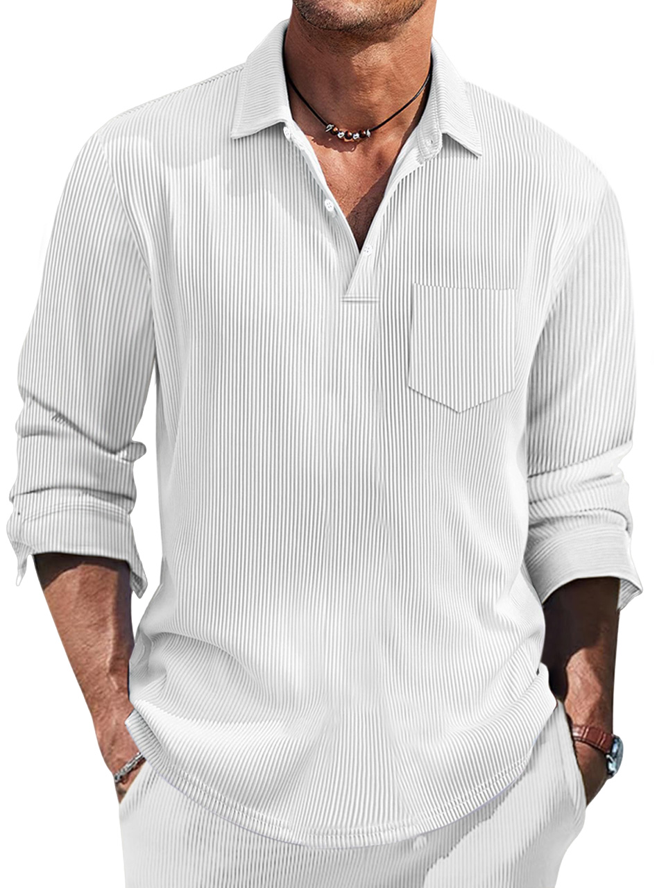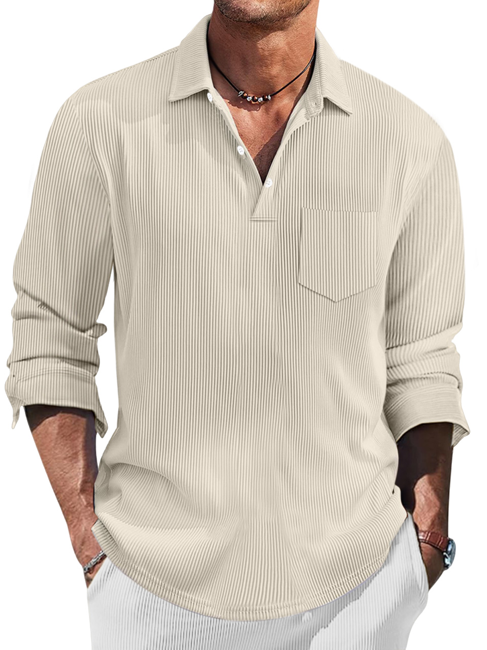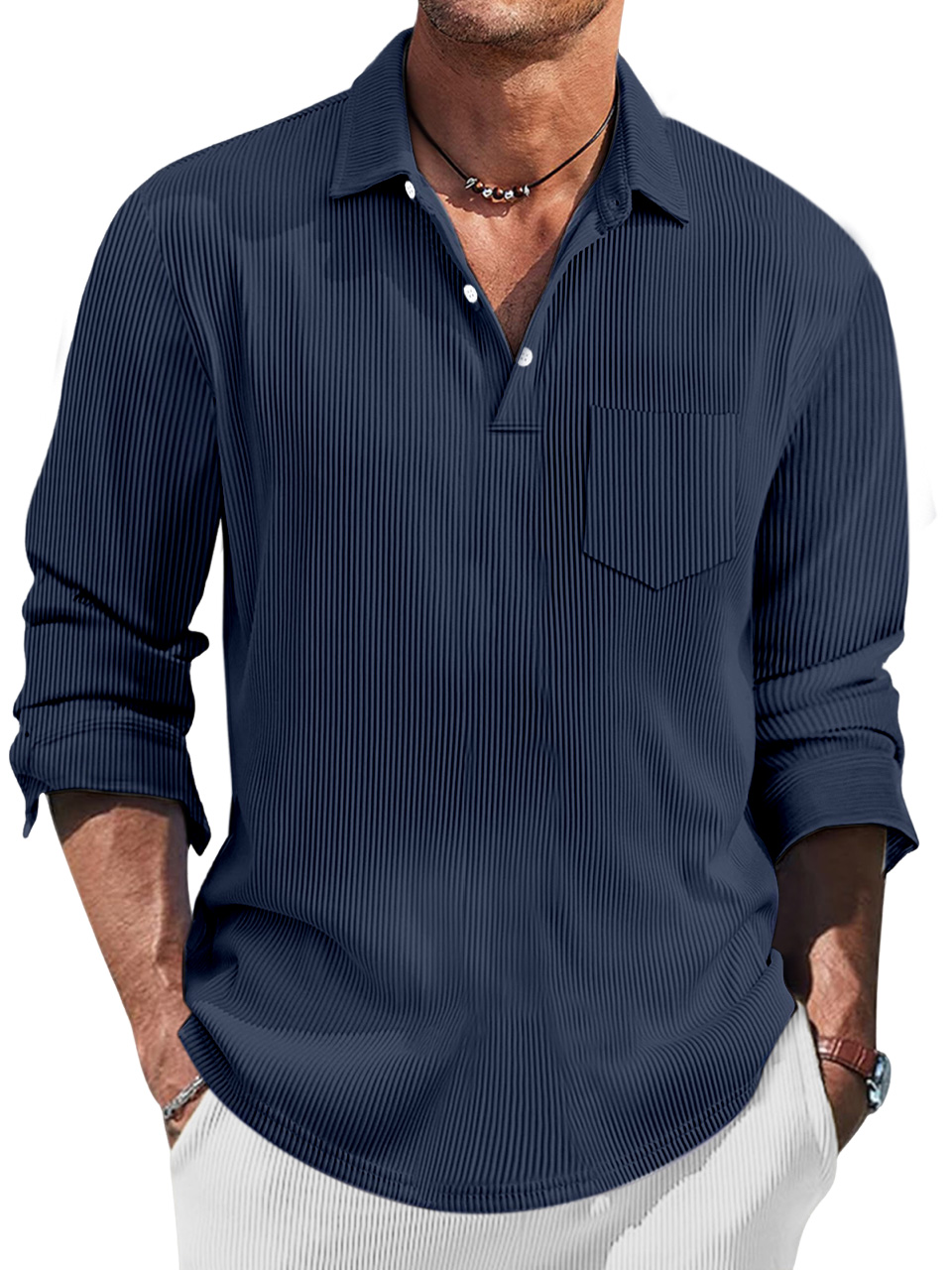 Men's Simple Solid Color Pit Lapel Button-up Polo Shirt