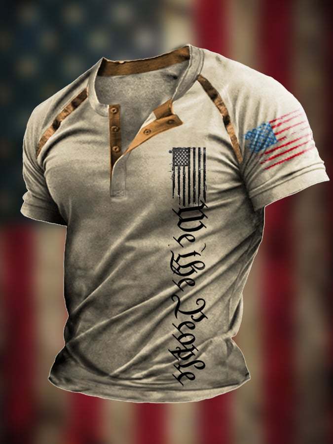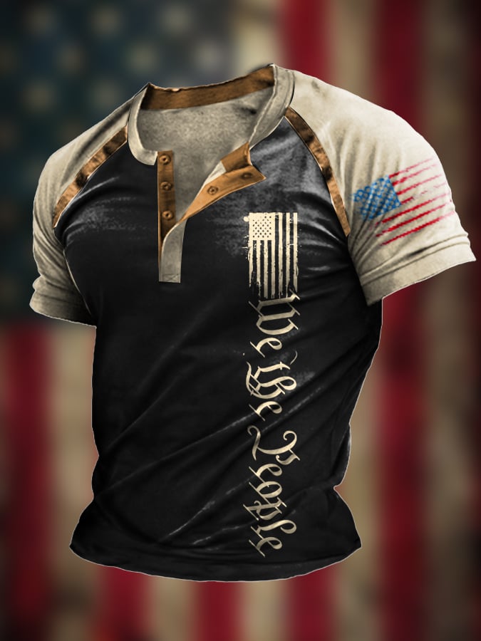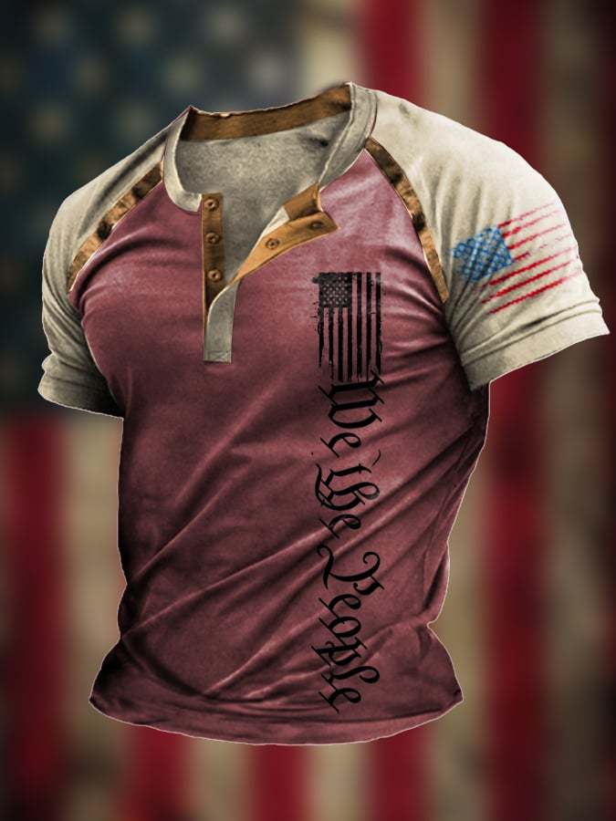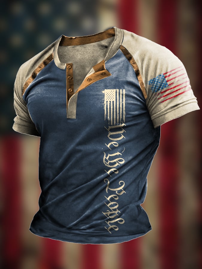 Men's The Pledge Independence Day Henley Neck Raglan Sleeve T-Shirt