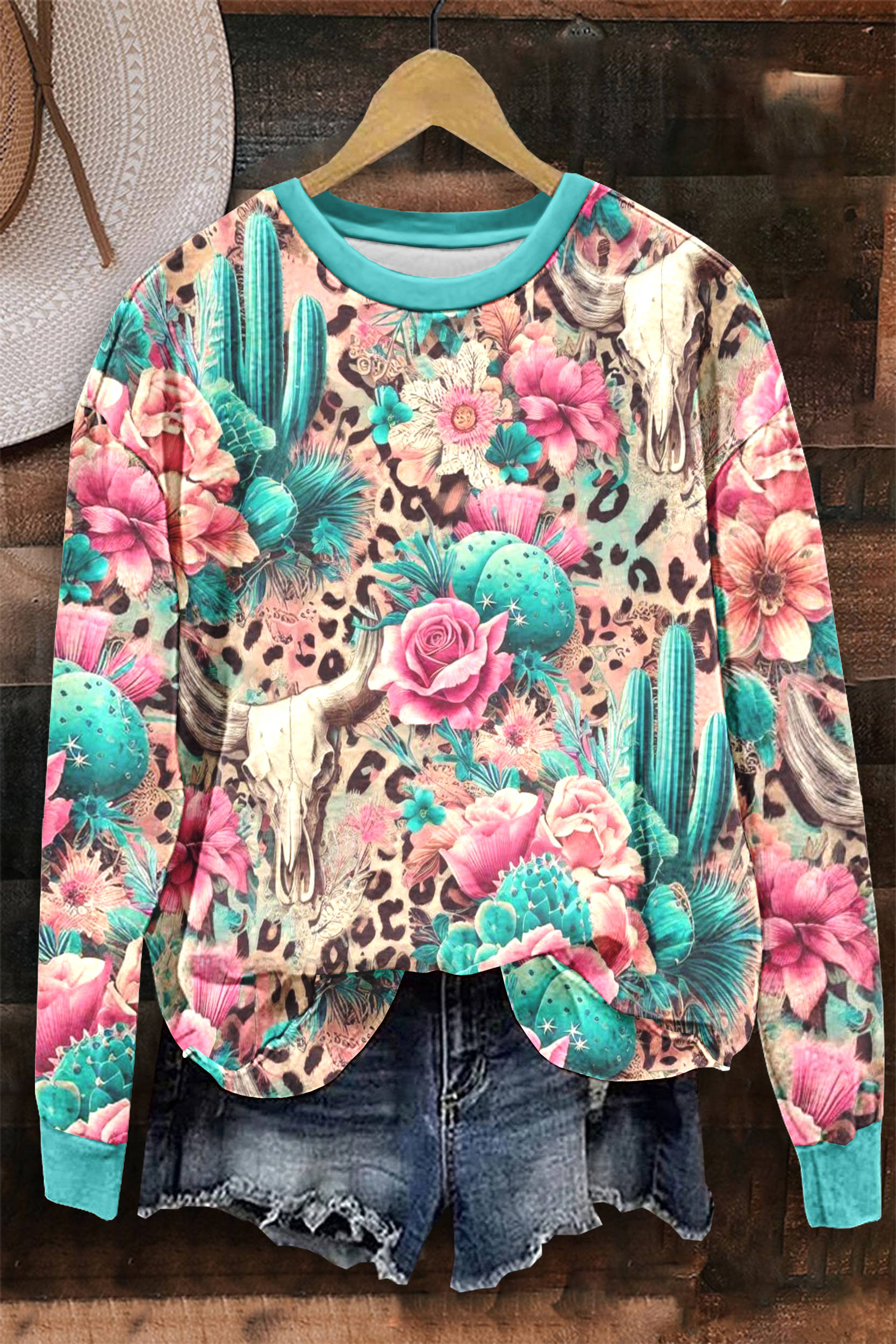 Stay on trend this season in our new classic, round neck sweatshirt. We especially love the graphic print fabric and think this piece will be a new favorite in your closet!