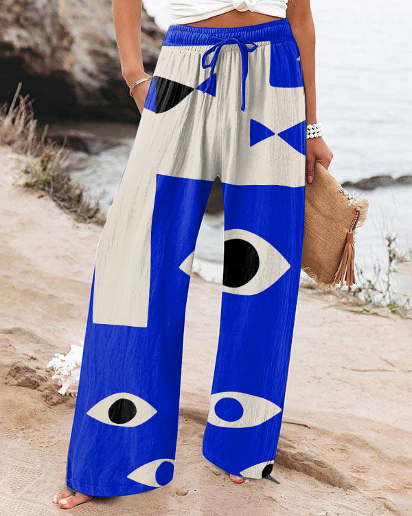 Retro Abstract Eye Art Loose Print Wide Leg Pants