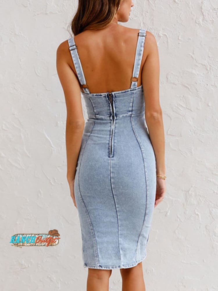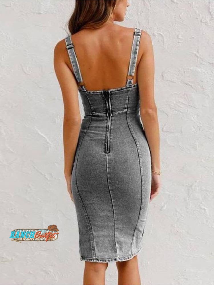 Short-sleeved U-neck Suspender Distressed Casual Denim Dress