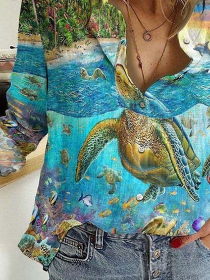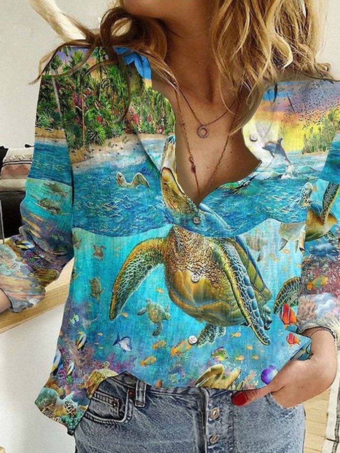 Turtle Forest Print Long Sleeve Shirt