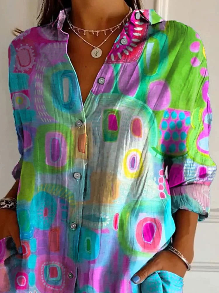 Vibrant Abstract Art Printed Women's Casual Cotton Shirt
