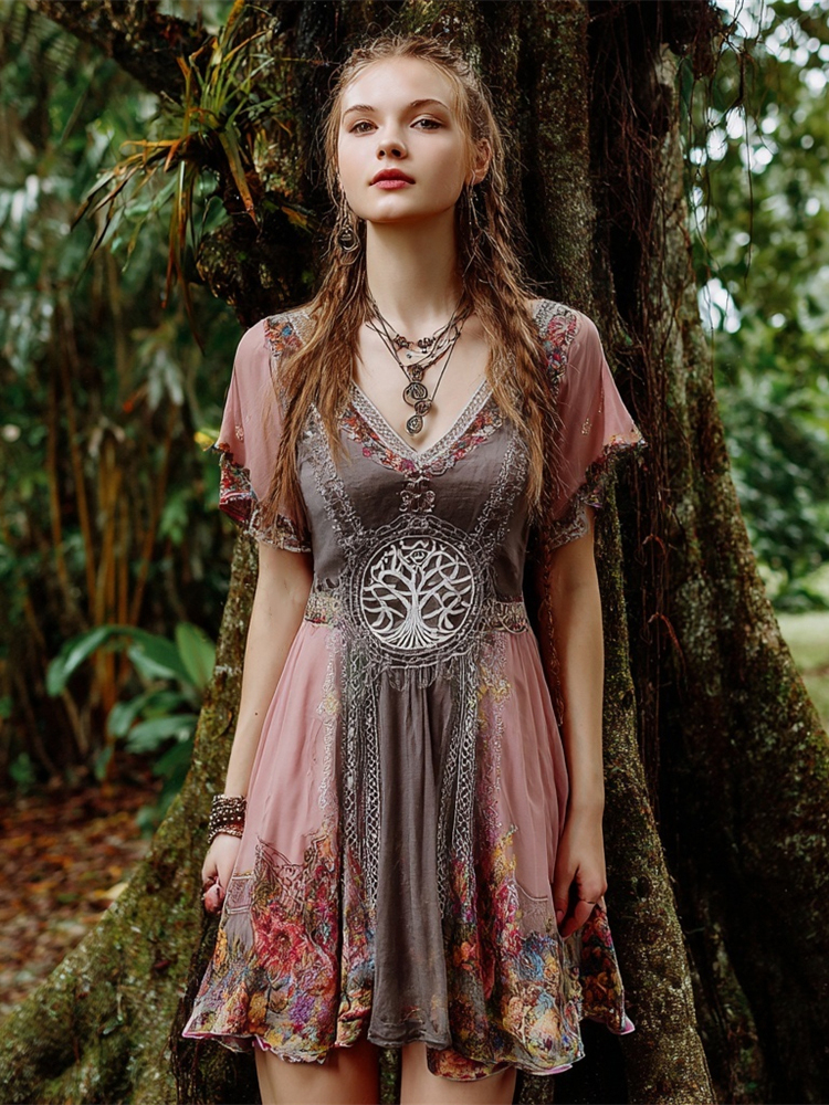 Viking Tree Of Life Women's V-neck Mini Dress