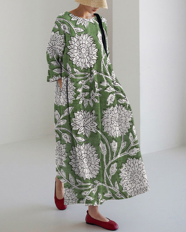 Vintage Floral Print Long Sleeve Dress