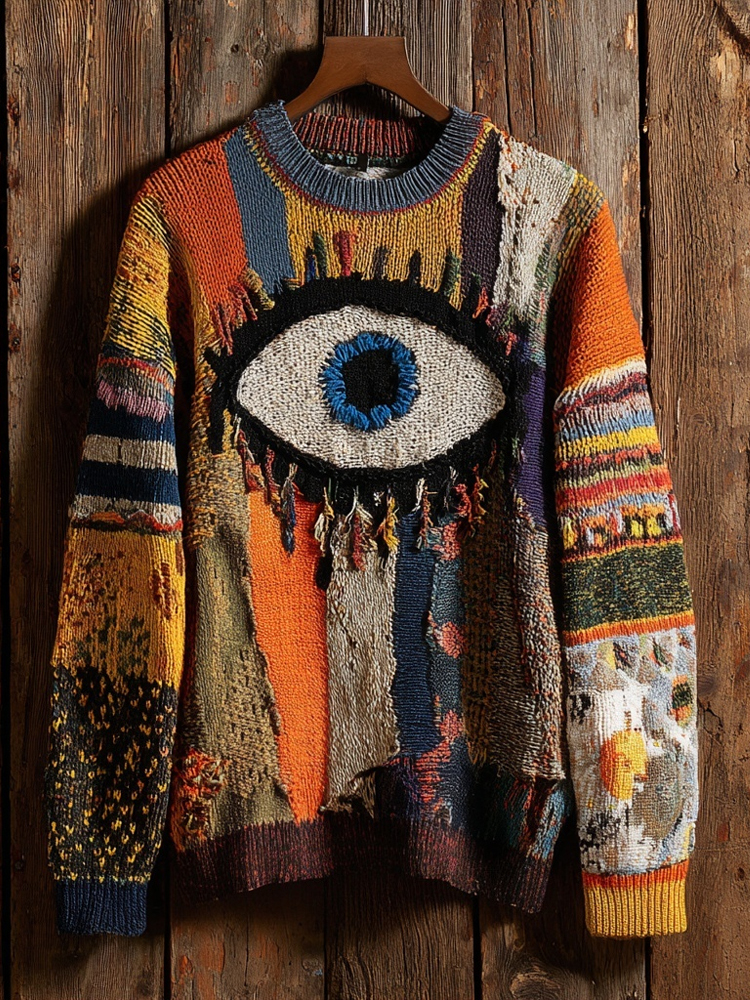 Vintage Spooky Eyeball Halloween Patchwork Cozy Knit Sweater
