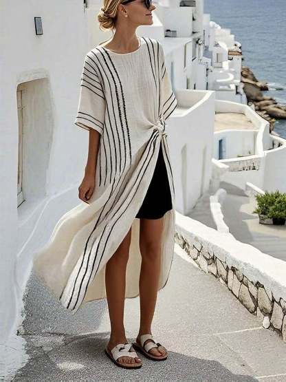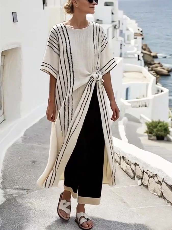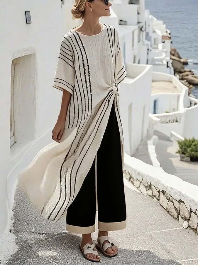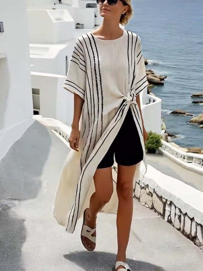 Women'S Casual Loose Striped Printed Long Top