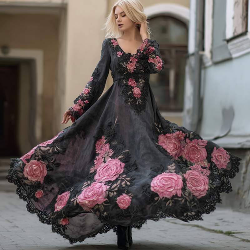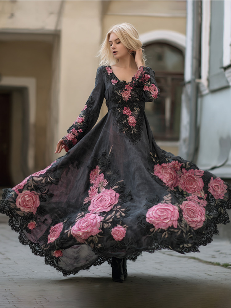 Women's Casual Retro Bohemian Embroidered Floral Print Dress