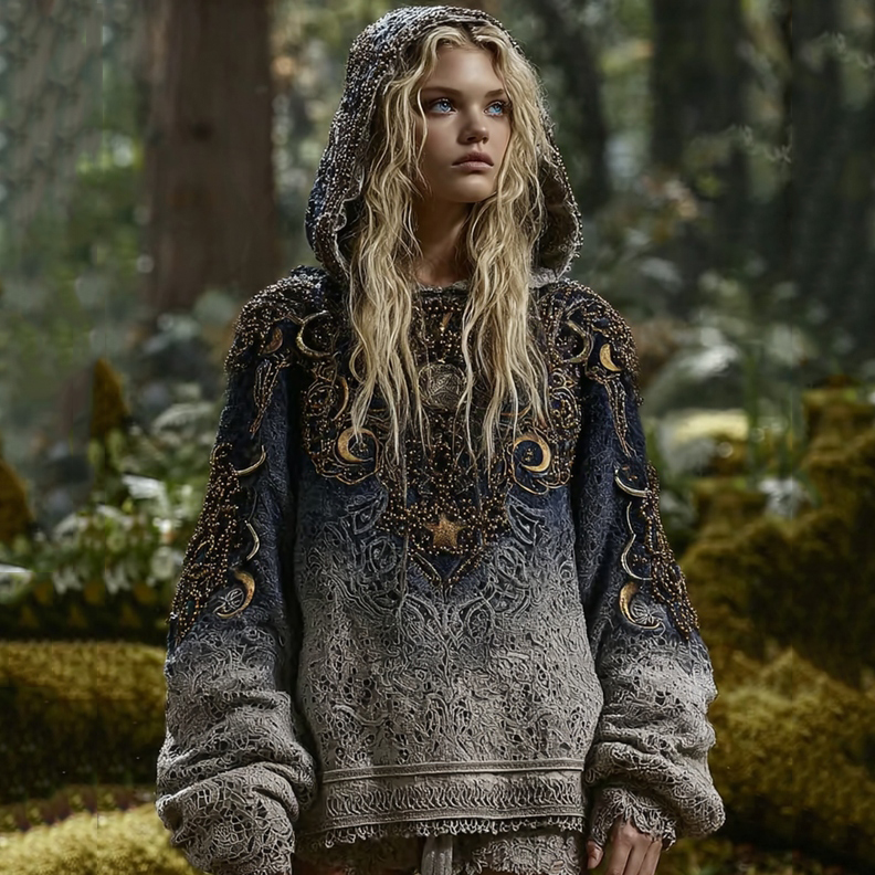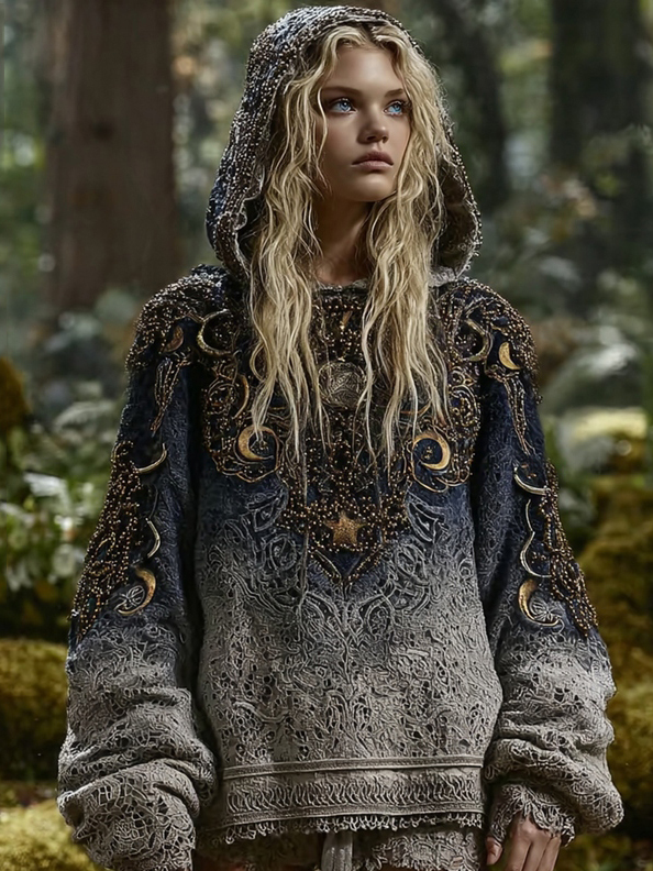 Women's Gradient Sun 3d Embroidered Knit Hoodie