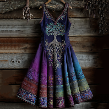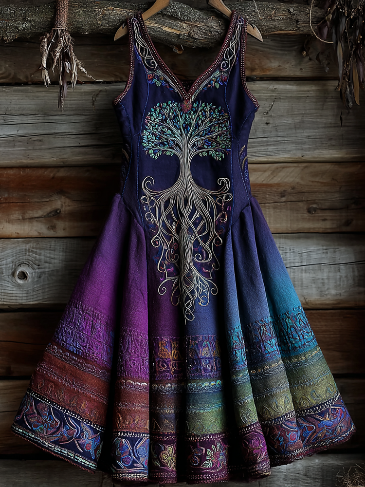 Women's Viking Vintage Celtic Life Of Tree Art V-neck Maxi Dress