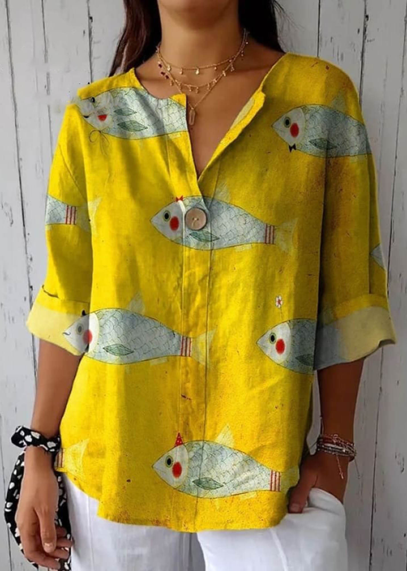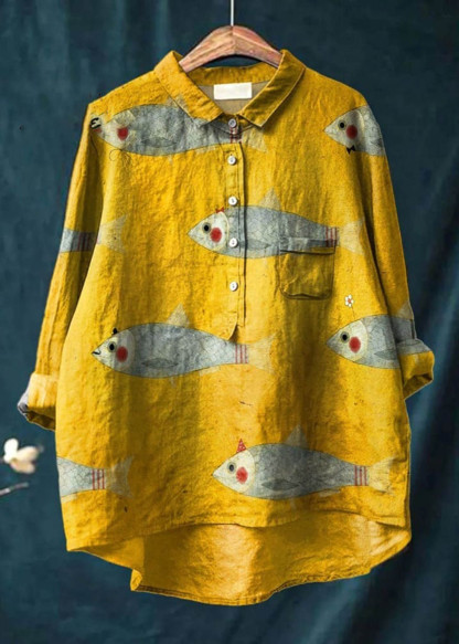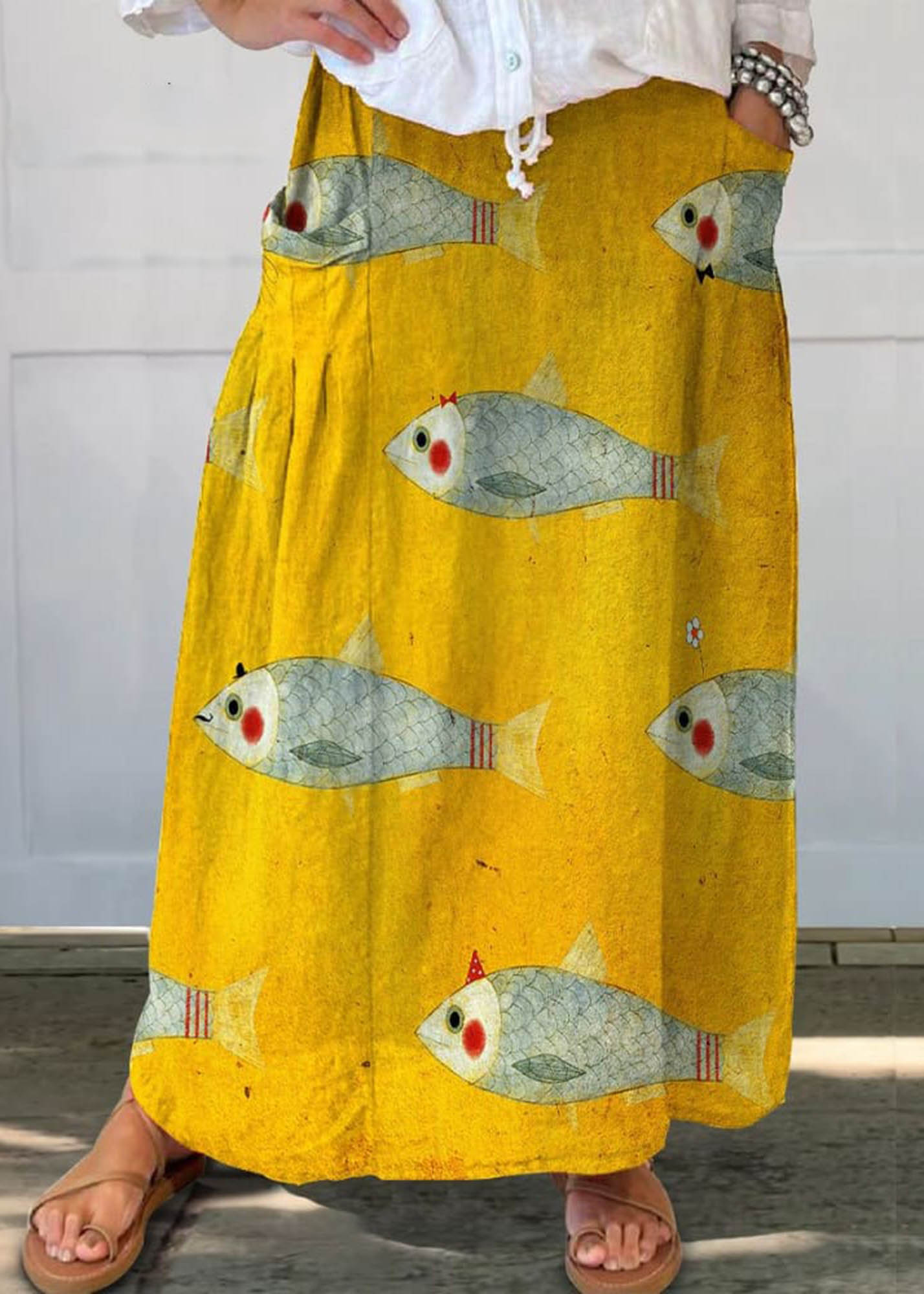 Women's Vintage Fish Art Print Linen Pocket Skirt