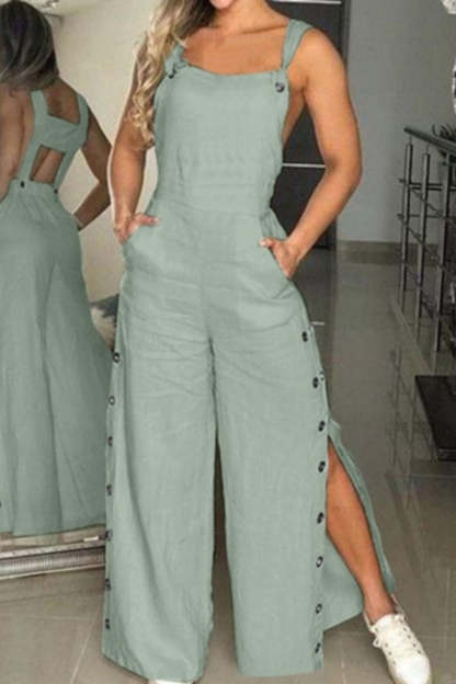 Casual Buttons Backless Spaghetti Strap Regular Jumpsuits(5 Colors)