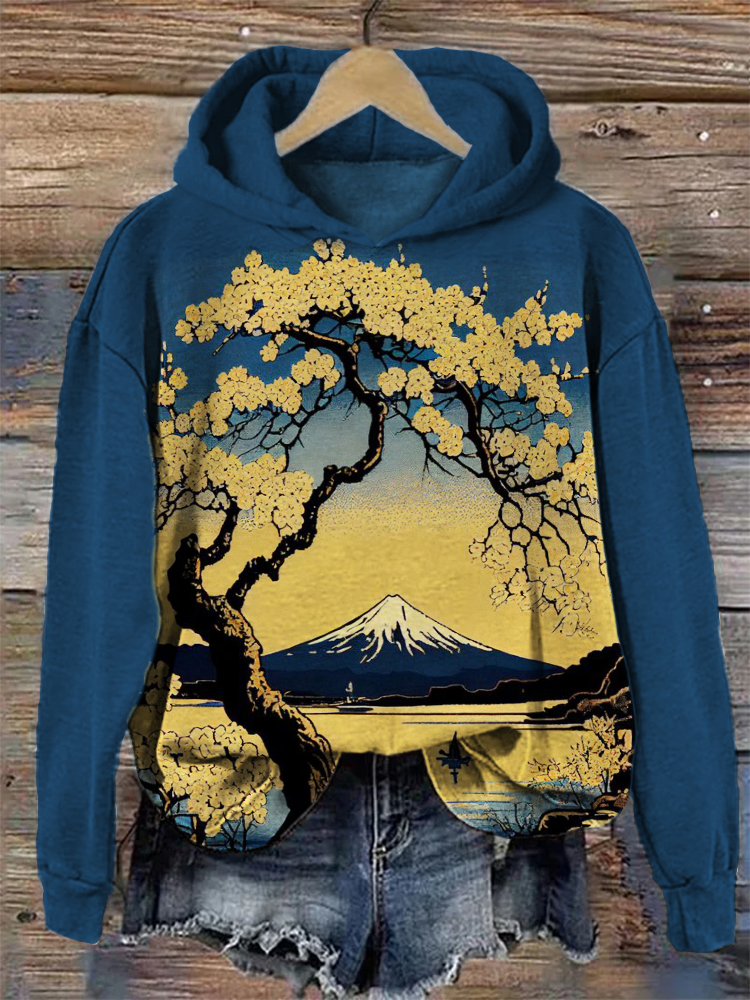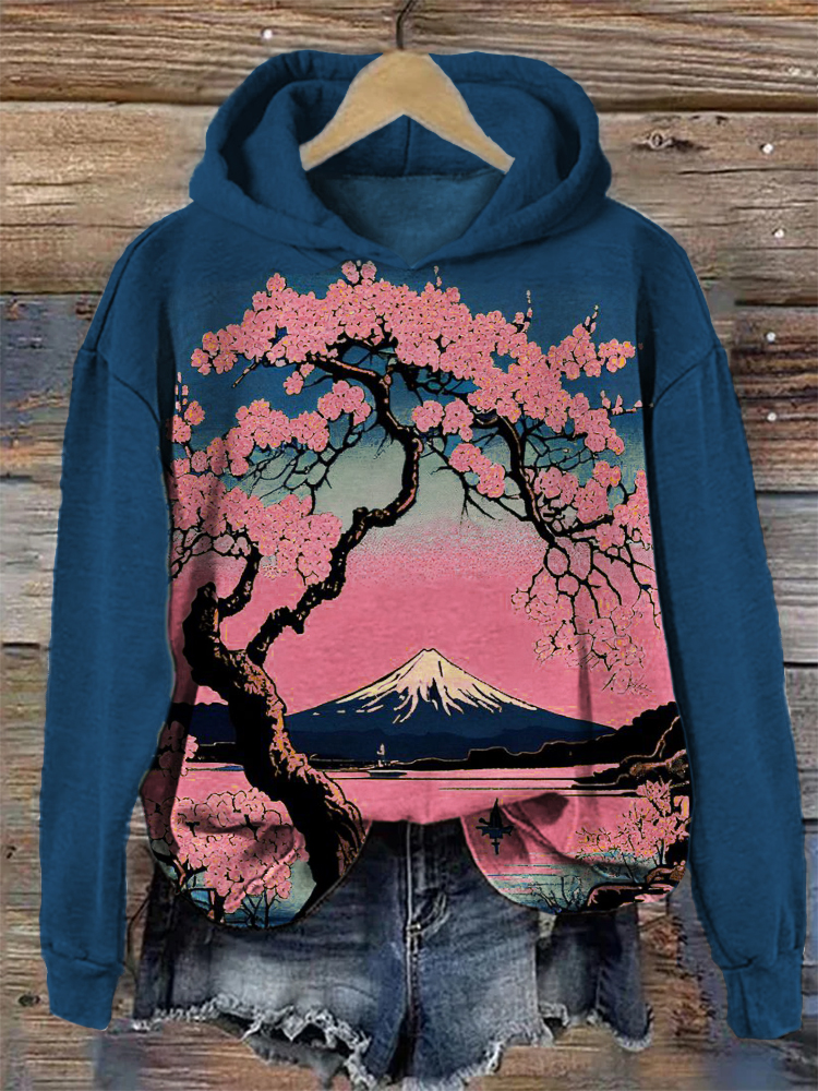 Cherry Blossom Mount Fuji Landscape Japanese Art Hoodie
