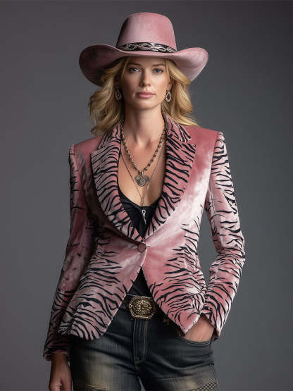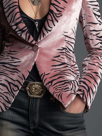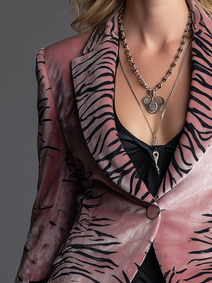 Chic Urban Pink Zebra-print Velvet Lapel Blazer