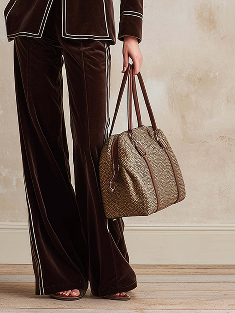 We suggest pairing it with a crisp white or light-colored shirt to contrast with the deep brown and accentuate its profound tone. For footwear, we recommend sleek leather shoes or boots to maintain a sophisticated urban style. Complete the look with a minimalist watch or delicate jewelry to showcase your elegant taste.