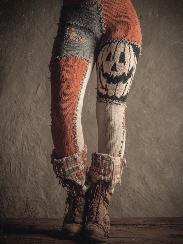 Halloween Funny Pumpkin Element Women's Knitted Tight-fitting Leggings