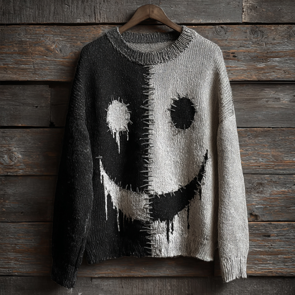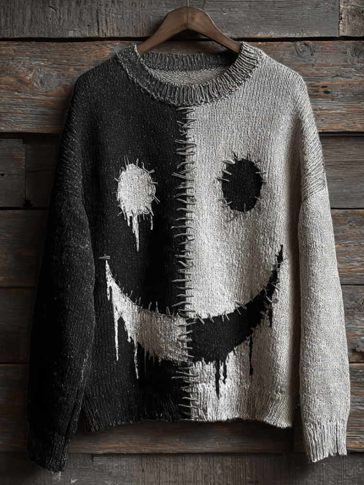 Halloween Ghost Face Black And White Vintage Long-sleeve Round-neck Sweater