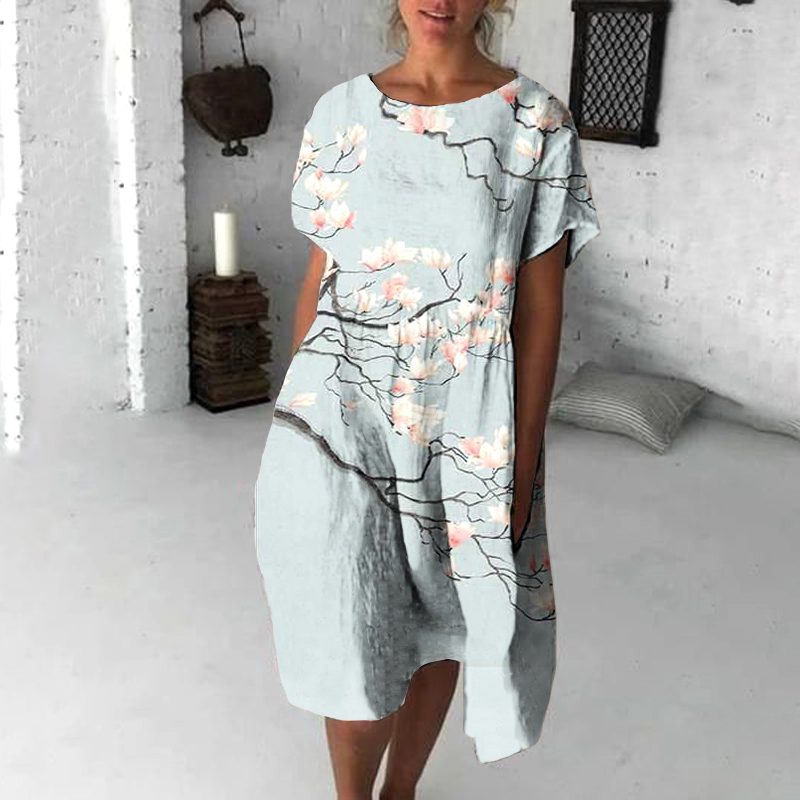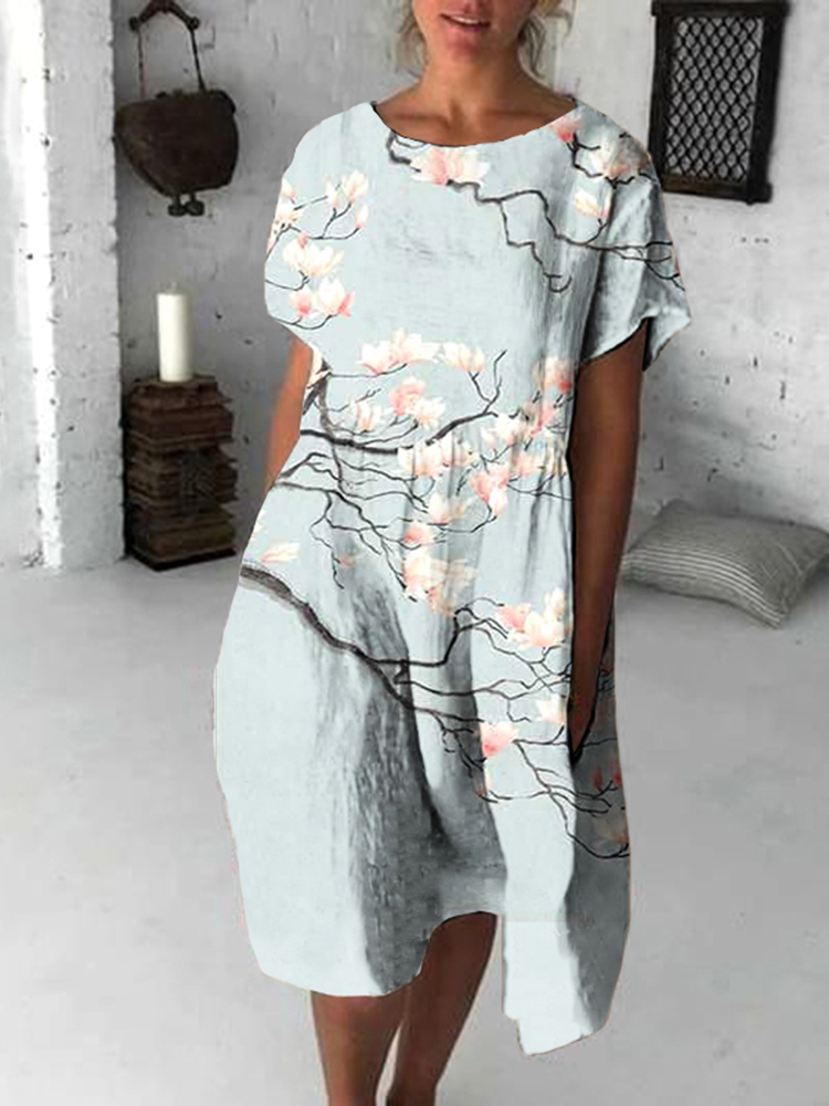 Japanese Vintage Flowers Art Flowy Midi Dress