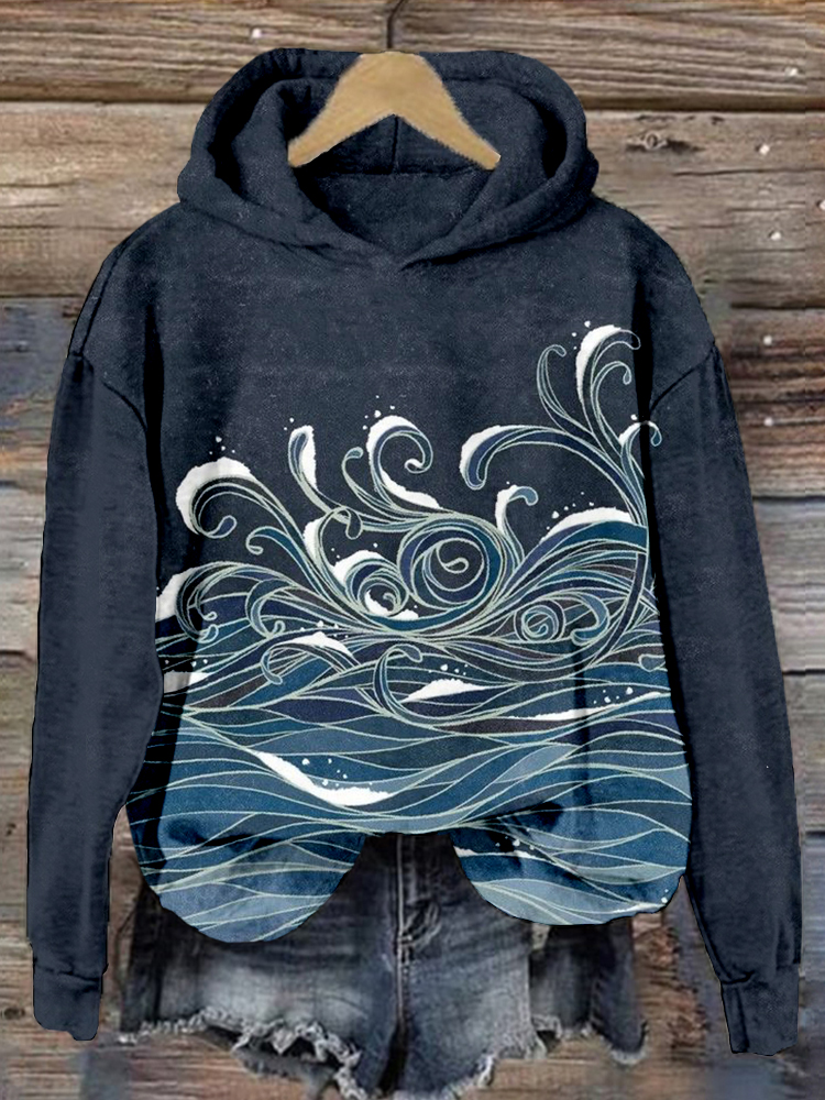 Japanese Wave Inspired Vintage Cozy Hoodie