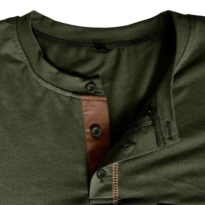 - Feature: This basic men's long-sleeve henley has a classic design with a three-button placket, contrasting collar and lines that highlight the garment's unique design. The small V-neck with buttons is more unique than a regular crew neck, and there's a chest pocket for a casual, everyday look. The slightly loose cut vaguely highlights the strong outline of the man's body.