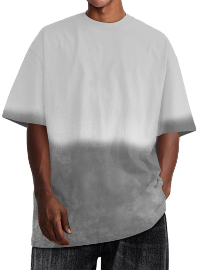 Men's Casual Fashion Retro Washed And Aged Gradient Short-sleeved T-shirt