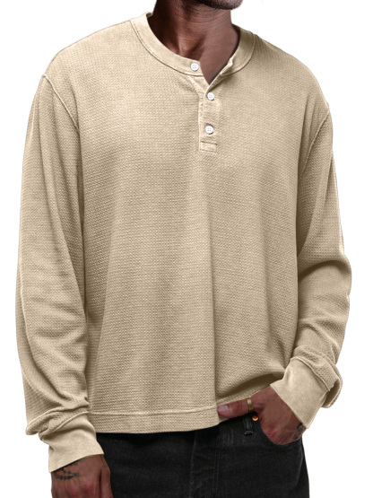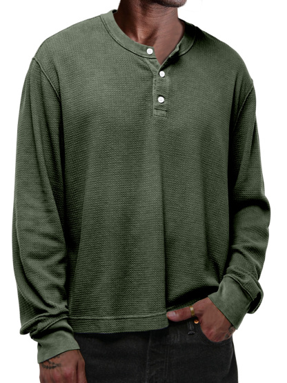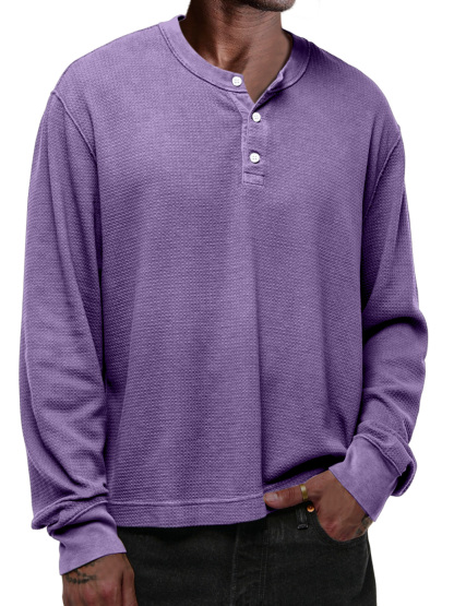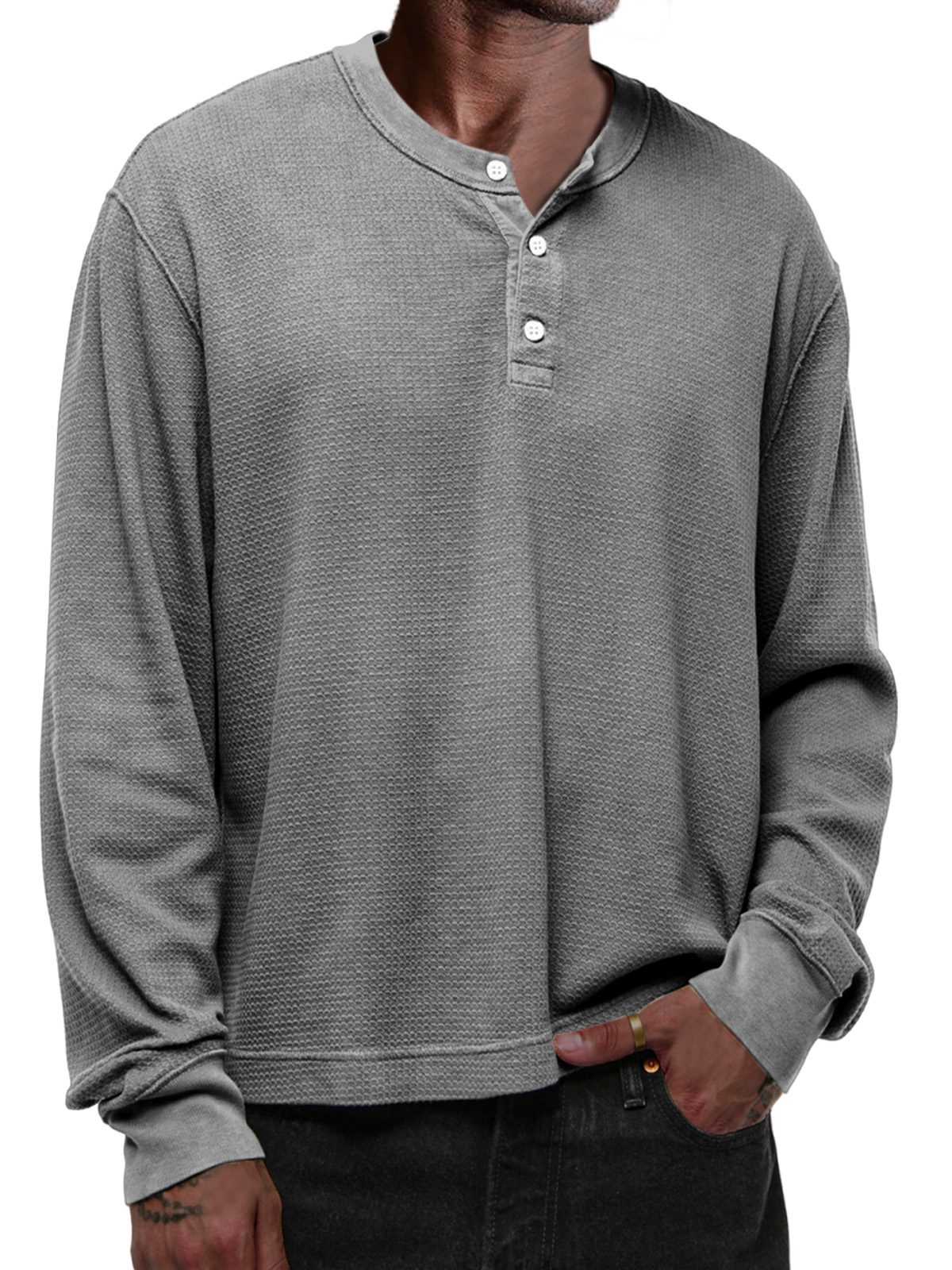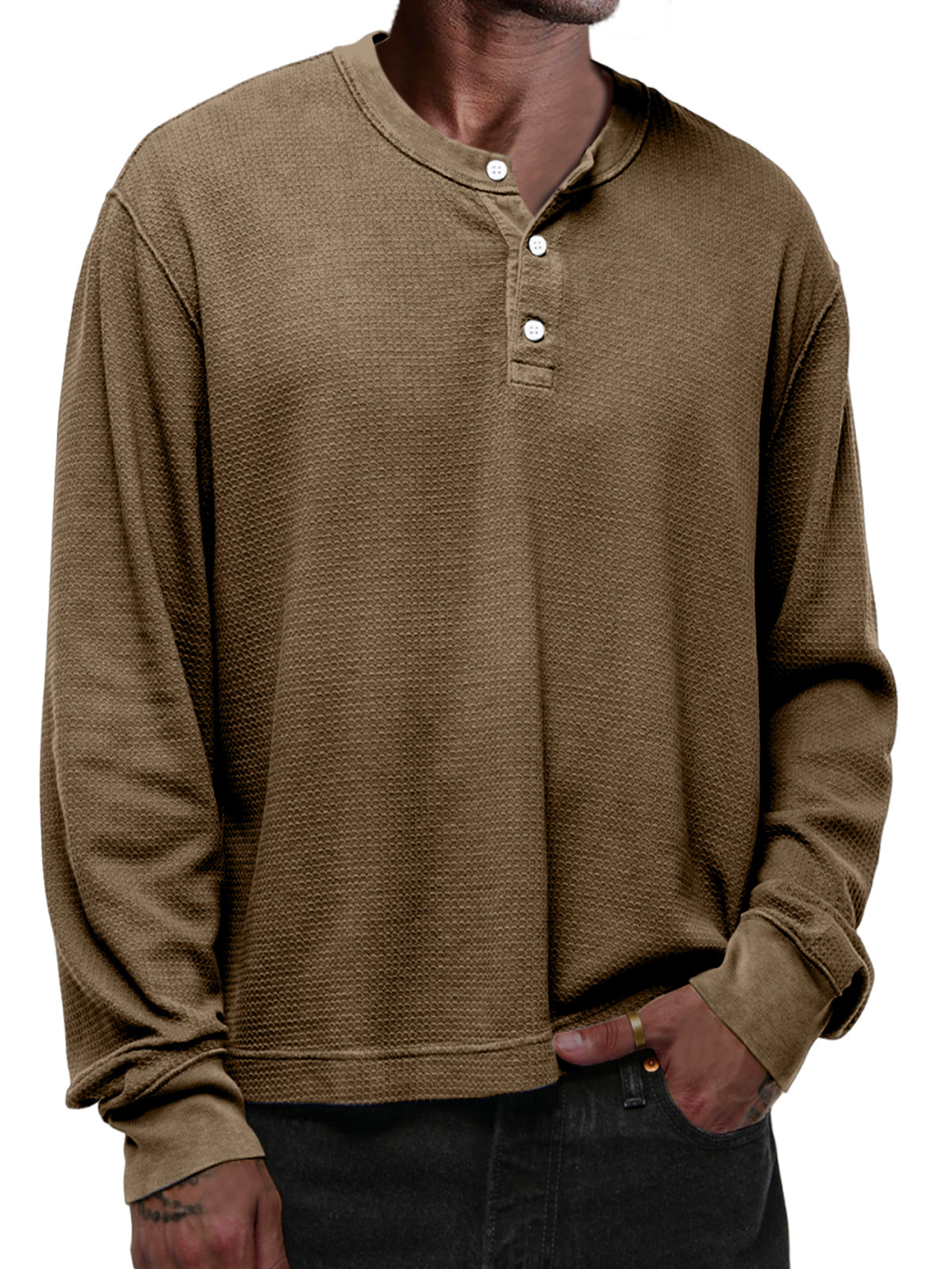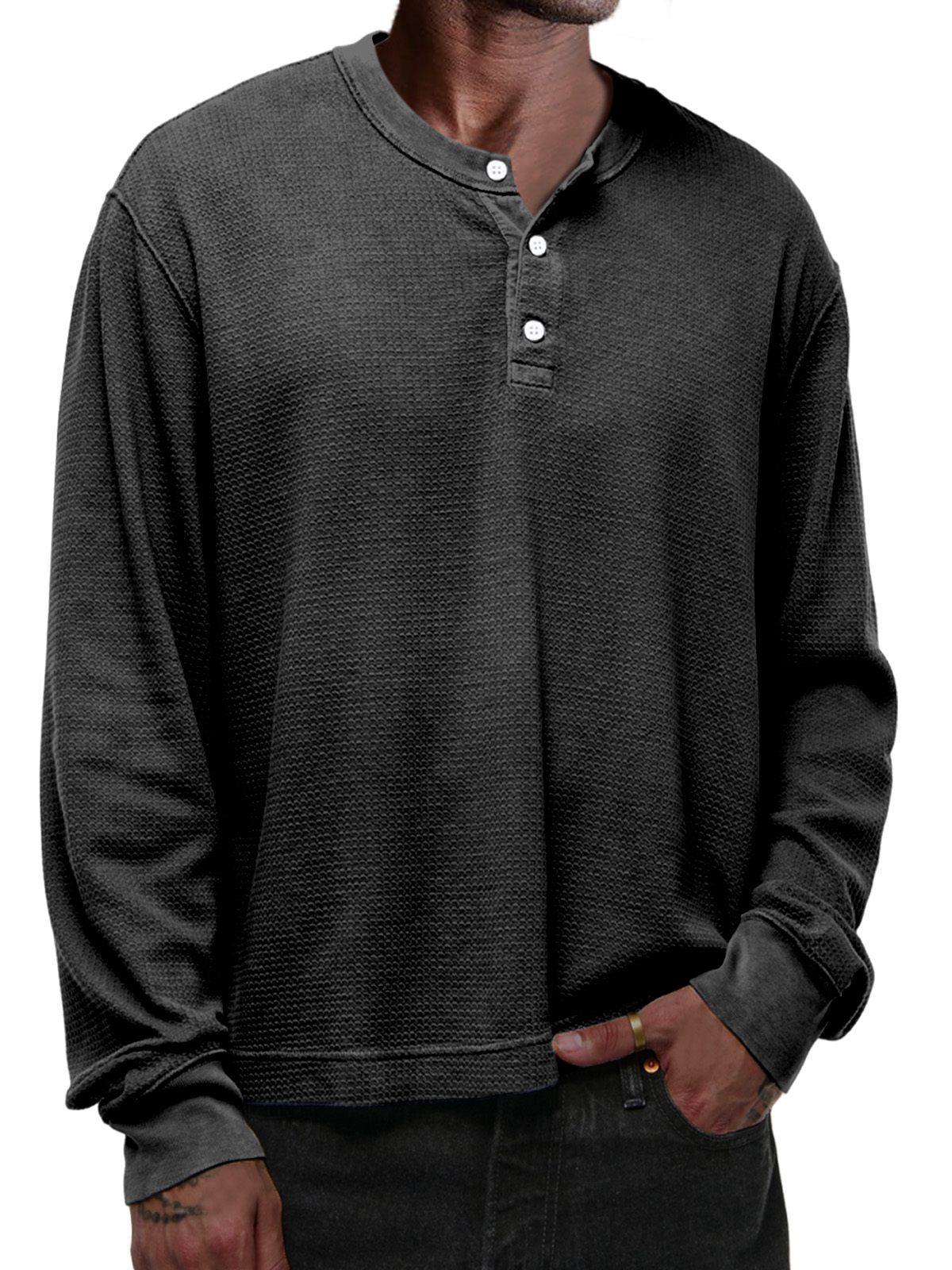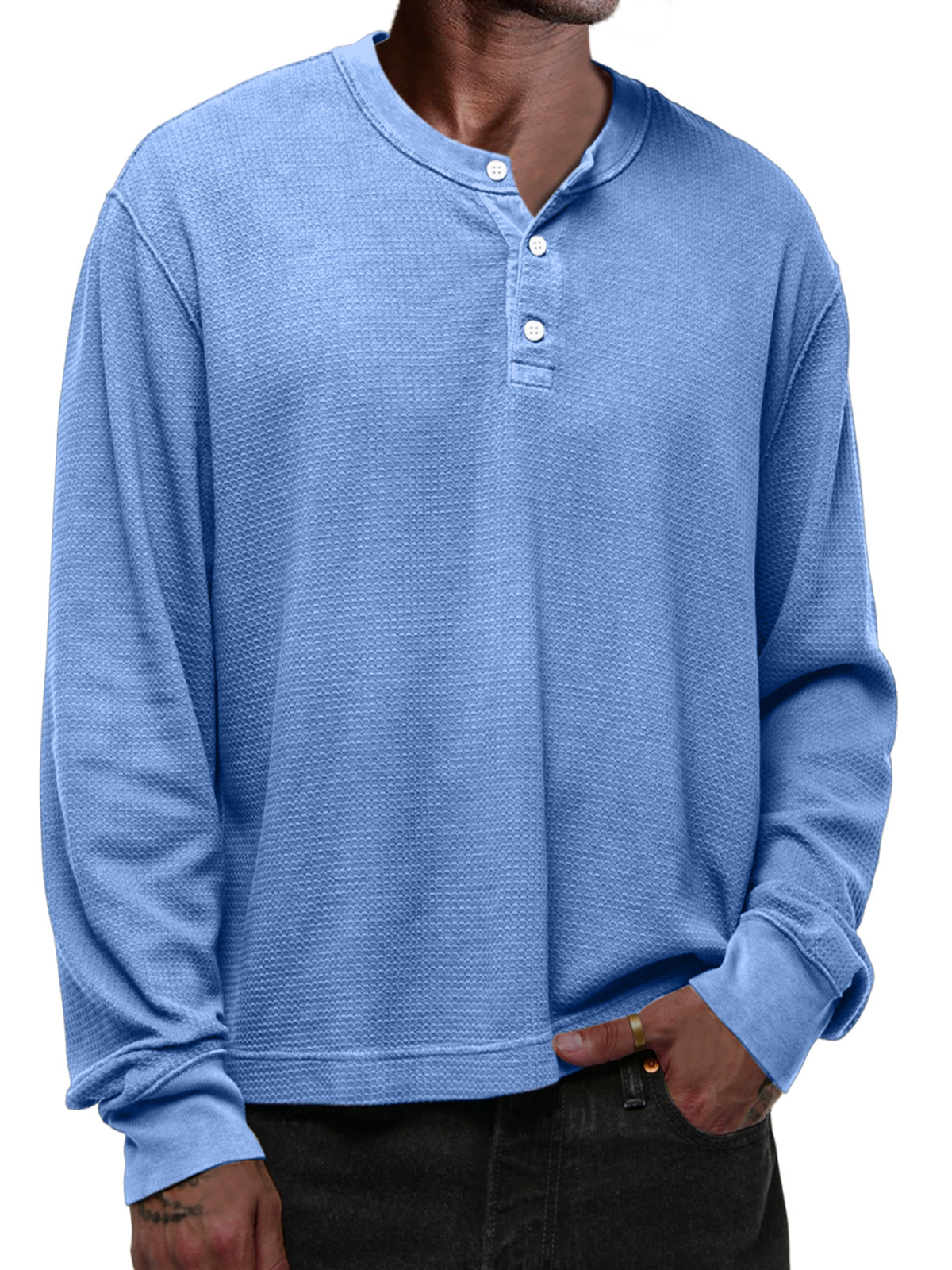 Men's Casual Solid Color Waffle Button Henley Shirt