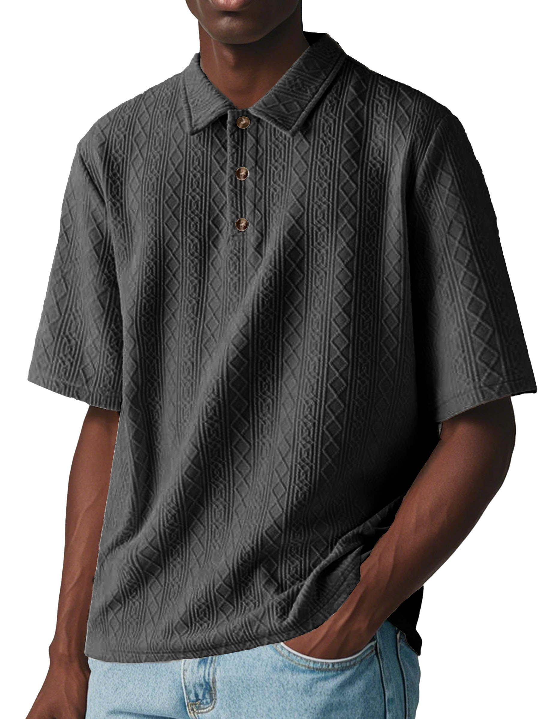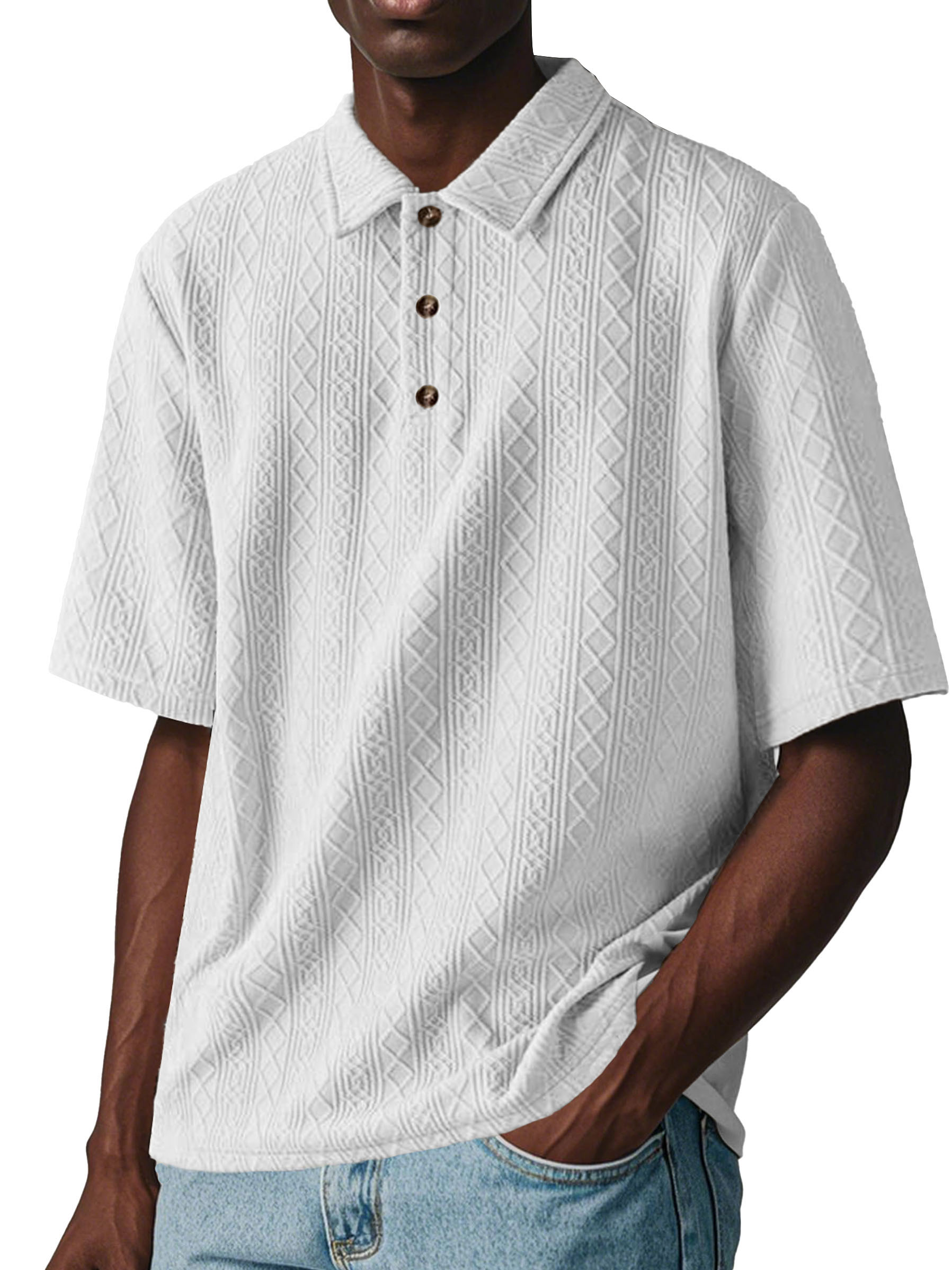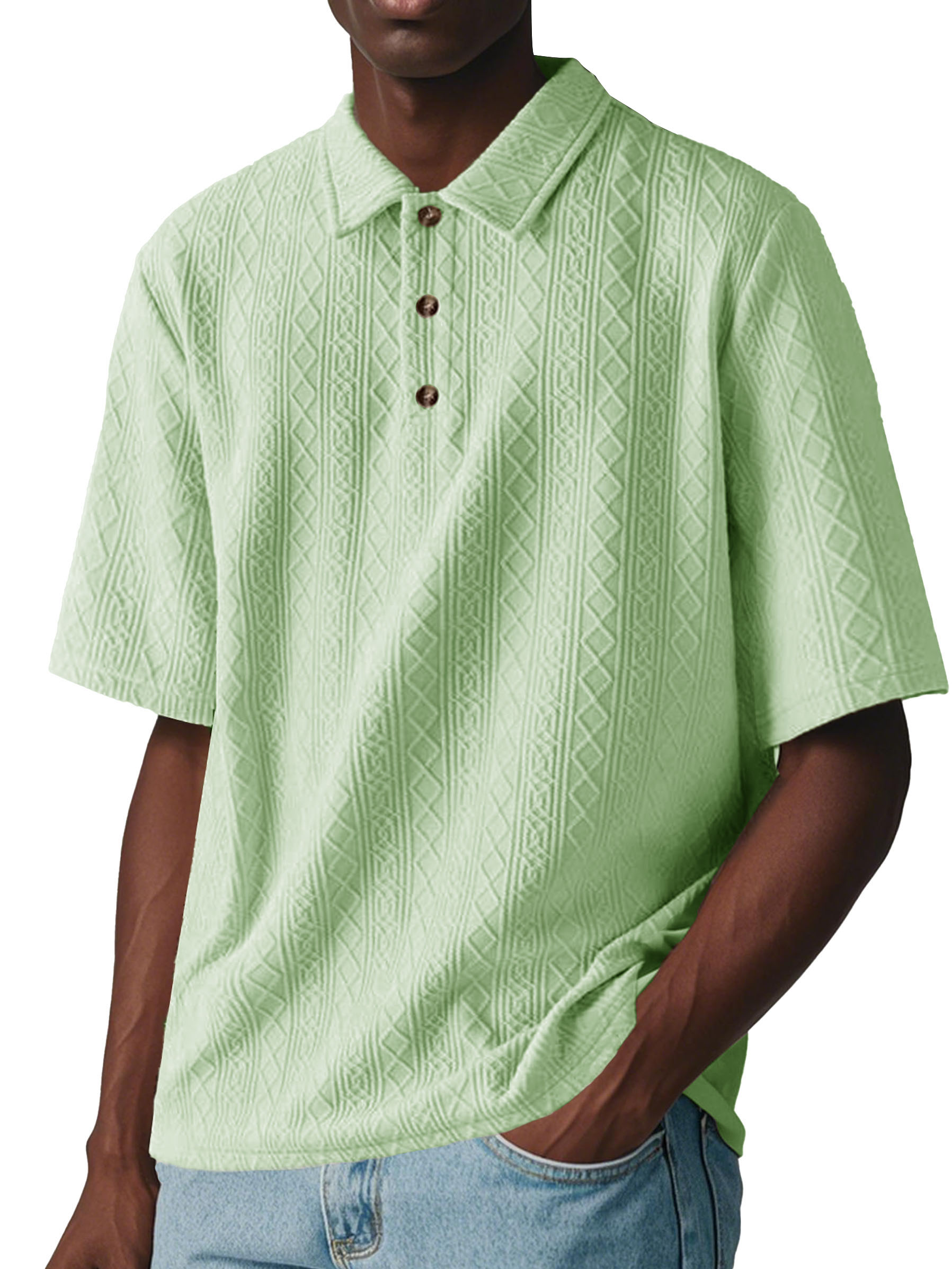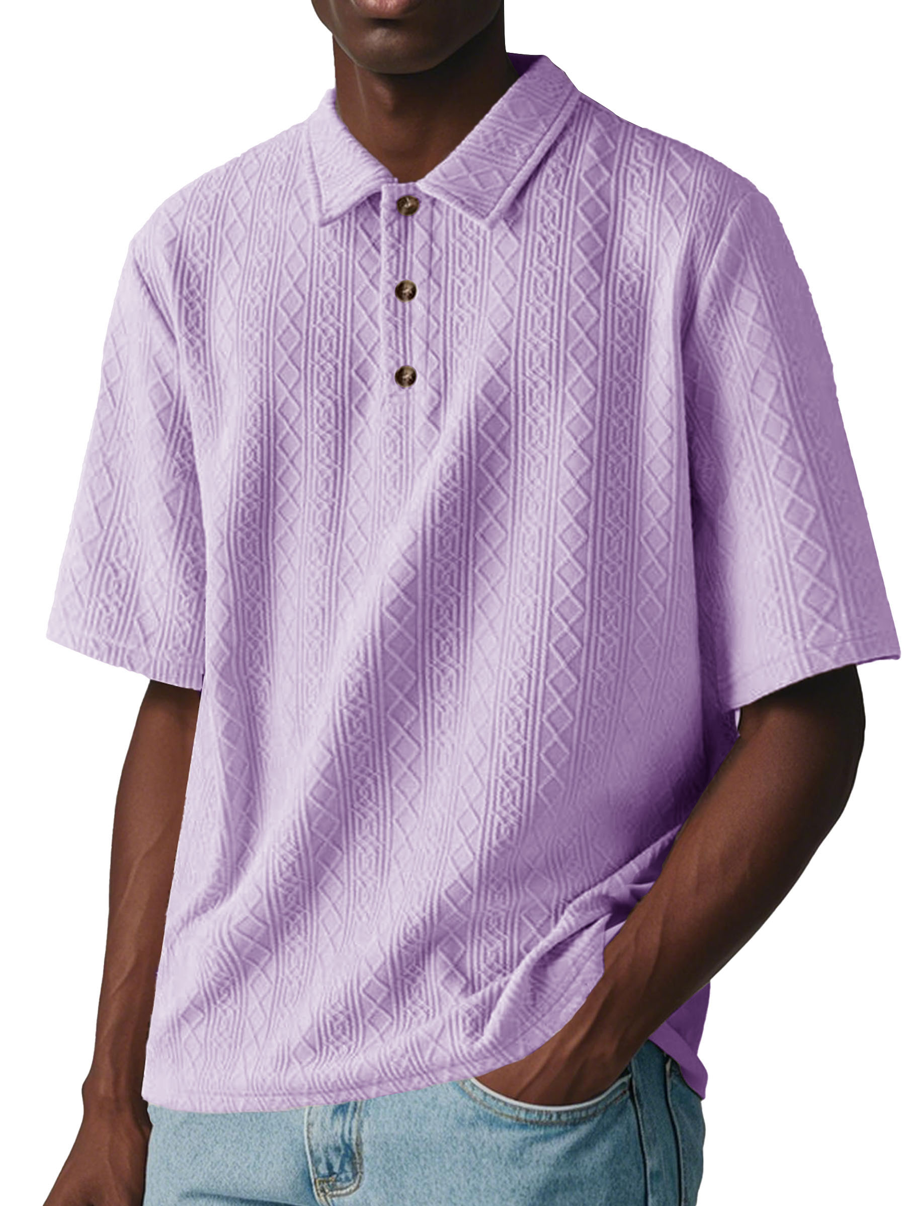 Men's Fashion Casual Jacquard Short-sleeved Lapel Polo Shirt