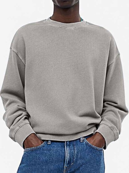 Men's Fashionable Casual Distressed Washed Long-sleeved Crew Neck Sweatshirt