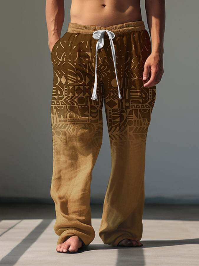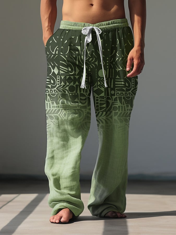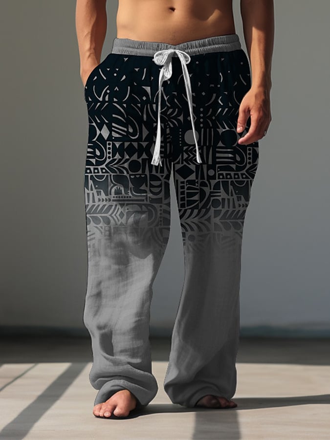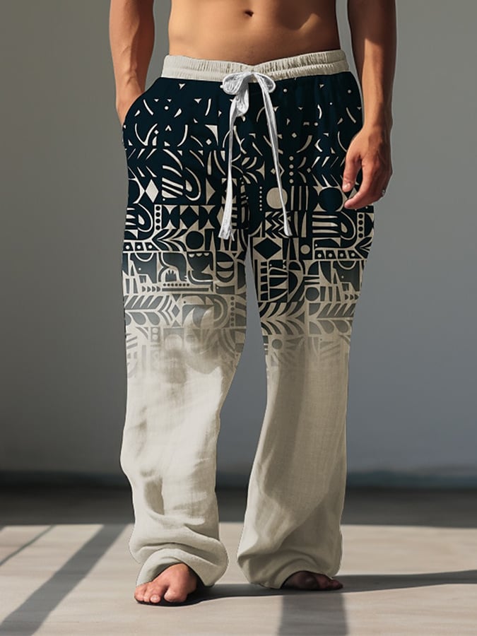 Men's Fashionable Resort Print Lace-Up Loose Casual Pants