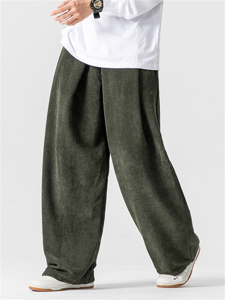 Men's Leisure Cozy Solid Color Corduroy Trousers
