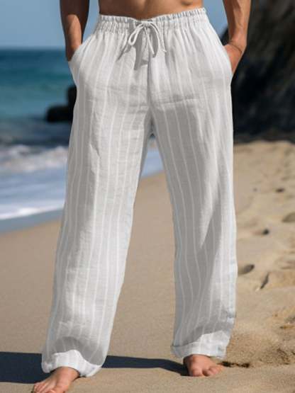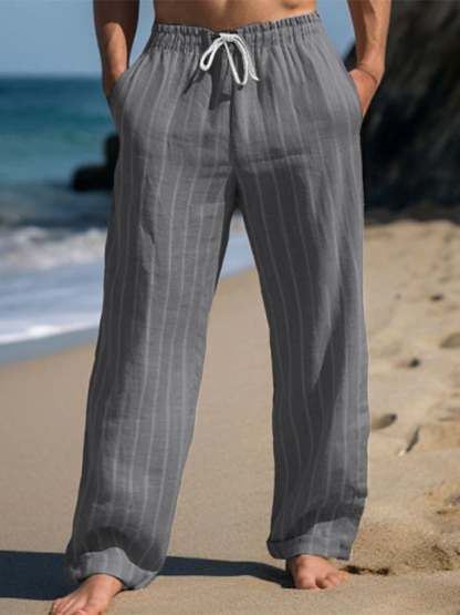 Men's Resort Striped Printed Lace-Up Loose Casual Pants