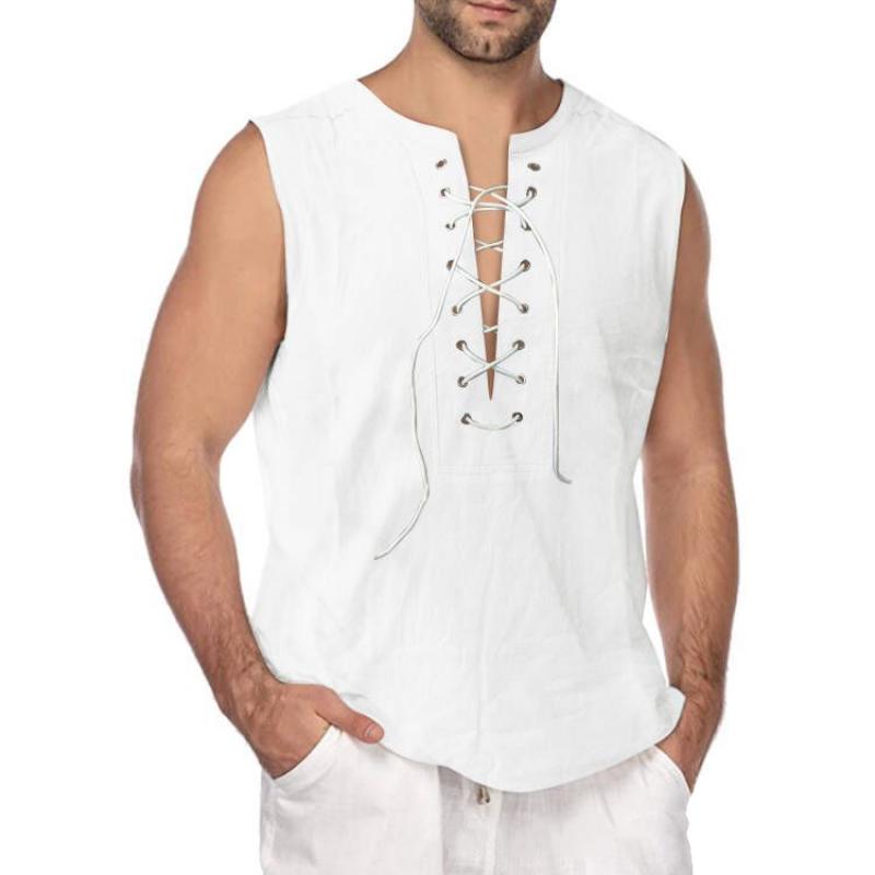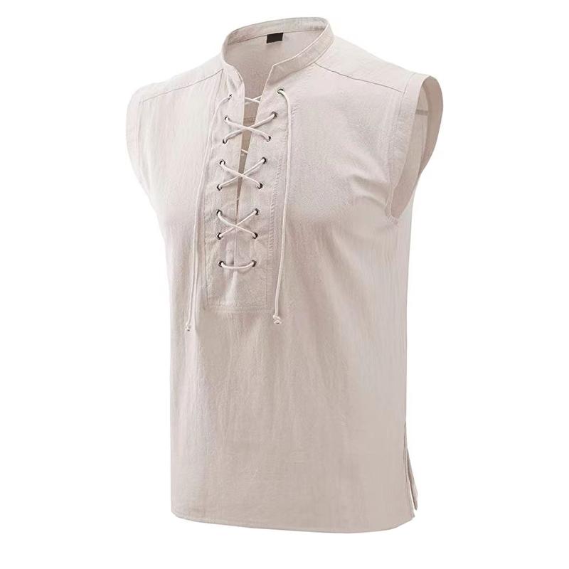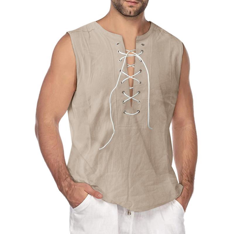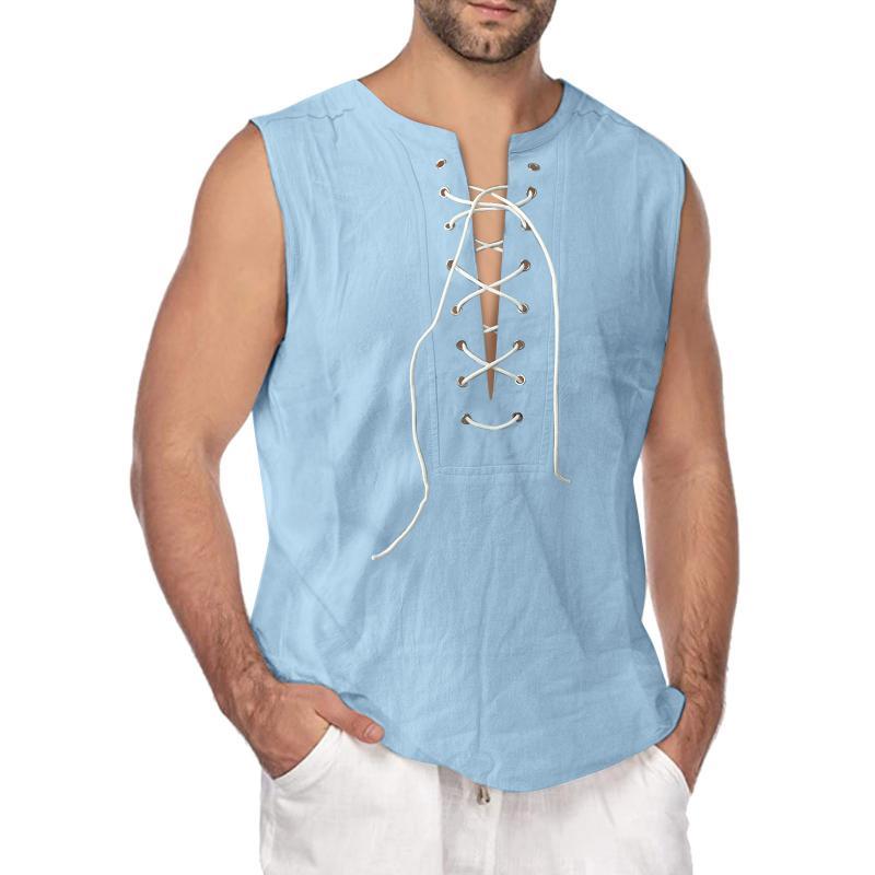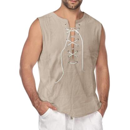 Men's Solid Drawstring Sleeveless Cotton Linen Tank Top