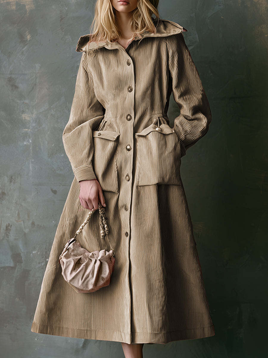 This retro khaki hooded, front-button A-line maxi dress is a versatile and fashionable choice, ideal for adding a touch of vintage charm to your wardrobe. Its classic design and comfortable fit make it a perfect choice for any season.
