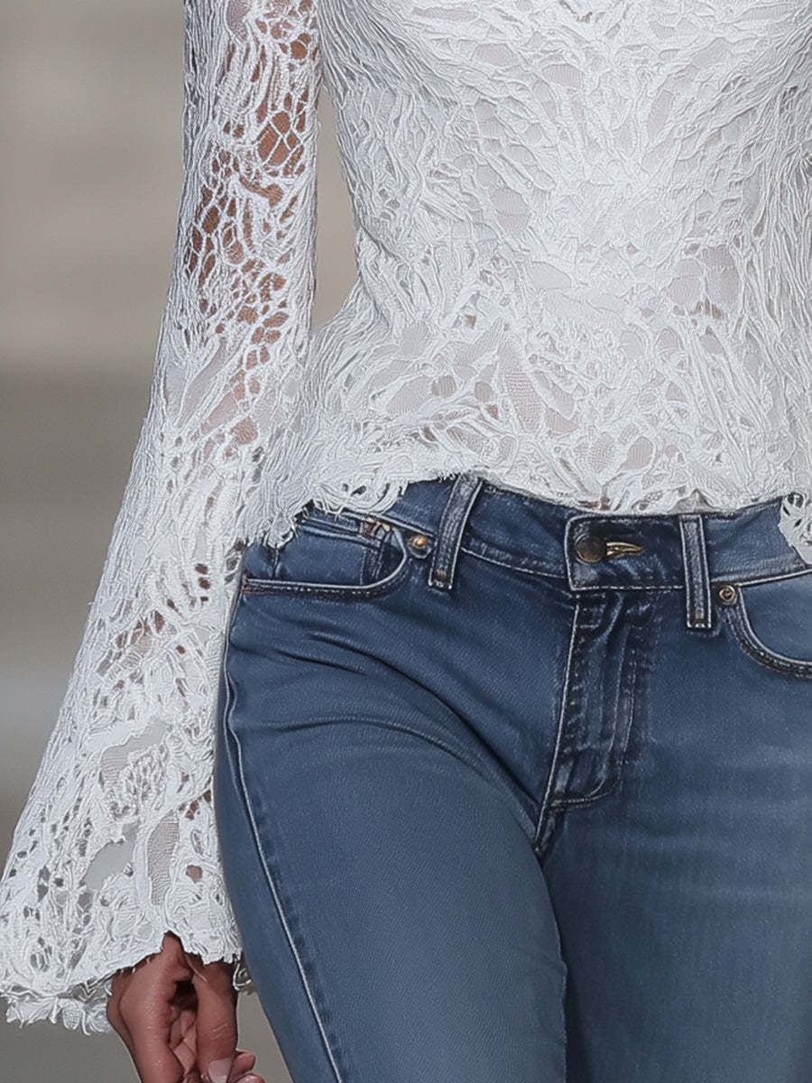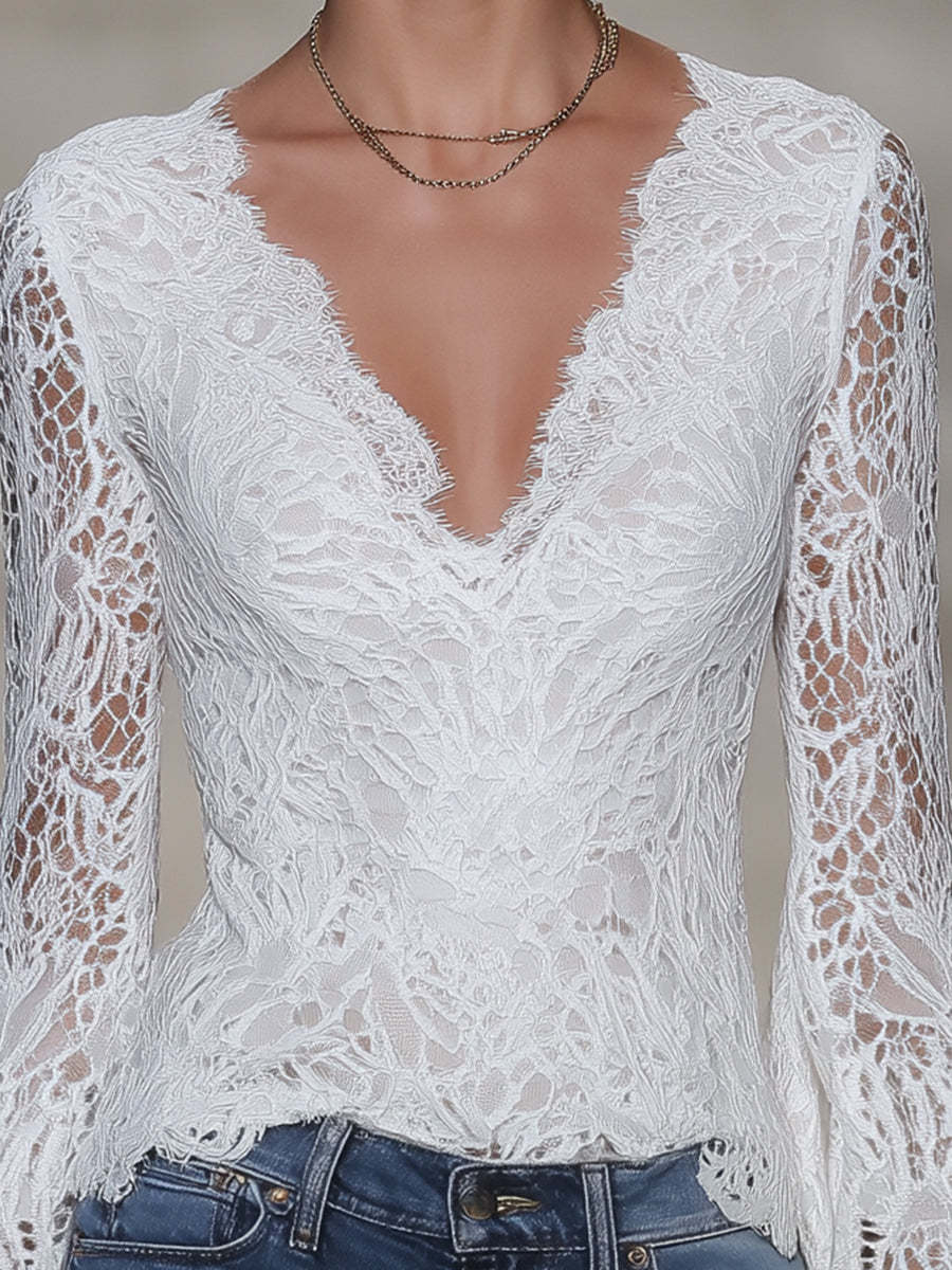 The Stylish White Lace V-neck Bell Sleeve Top is an ideal choice for those looking to add an elegant and timeless piece to their wardrobe. Its exquisite lace detail and elegant design make it suitable for both casual and formal events, ensuring you stand out in style.