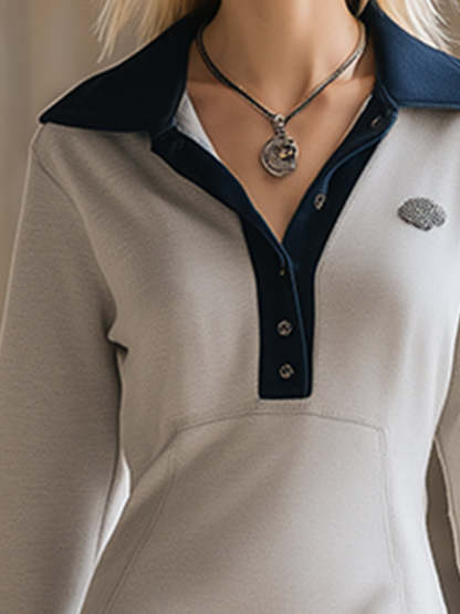 Introducing our stylish preppy color-blocked grey and white sweatshirt mini dress, a perfect blend of modern feminine style and comfort. This mini dress cleverly combines sporty and preppy elements, making it an indispensable versatile piece in your wardrobe.