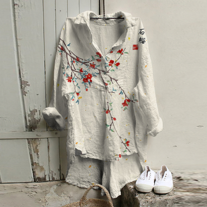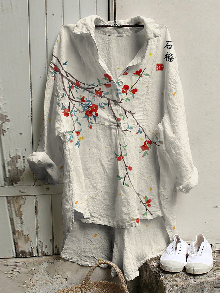 Pomegranate Ink Retro Floral Art Loose Shirt