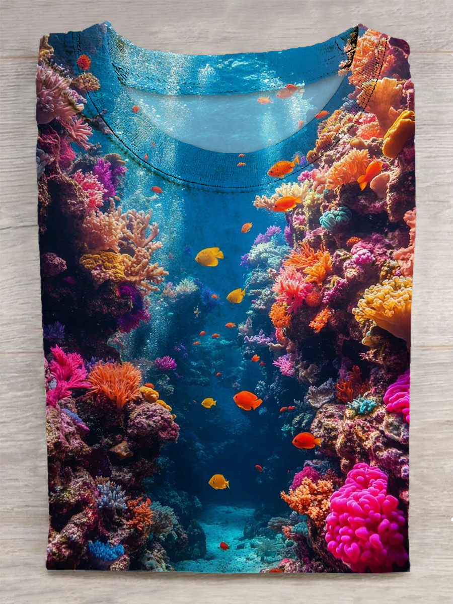 Unisex Underwater World Printed Vintage Fashion Loose Short Sleeve T-Shirt