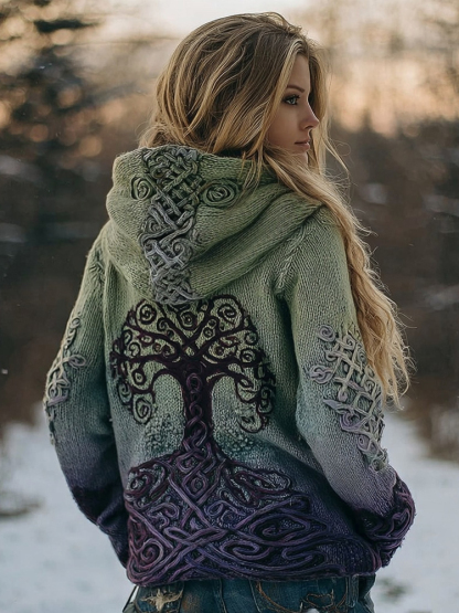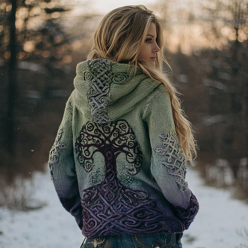 Viking Tree Of Life Embroidered Gradient Cozy Hooded Sweater