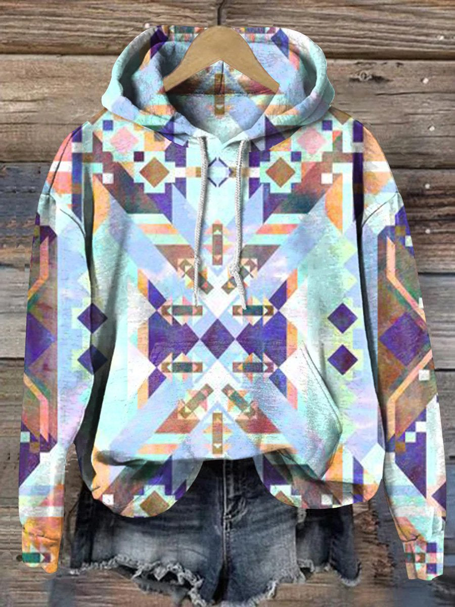 Vintage Ethnic Abstract Rhombus Geometric Art Print Casual Hoodie Sweatshirt