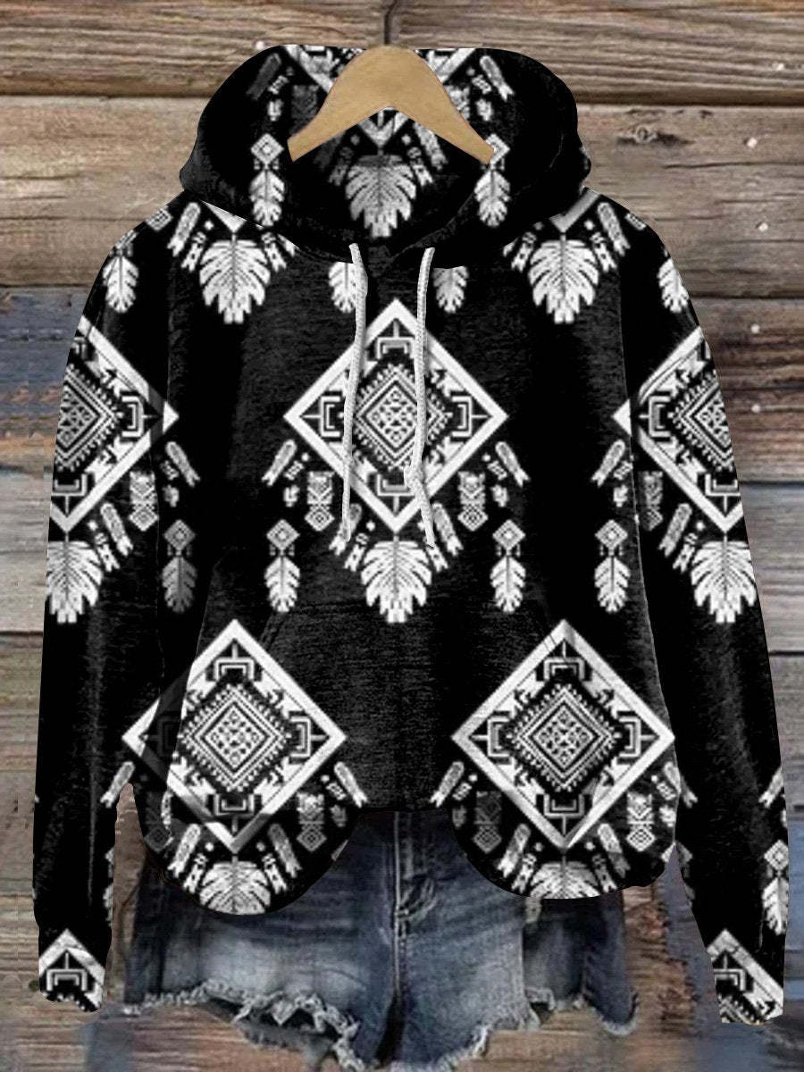 Vintage Ethnic Abstract Rhombus Geometric Painting Print Casual Hoodie Sweatshirt