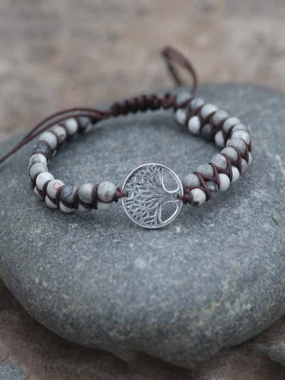 Vintage Ethnic Style Natural Stone Handwoven Tree of Life Bracelet