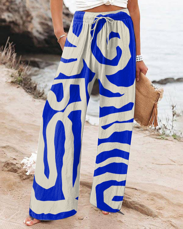 Vintage Indigo Abstract Art Loose Wide Leg Pants