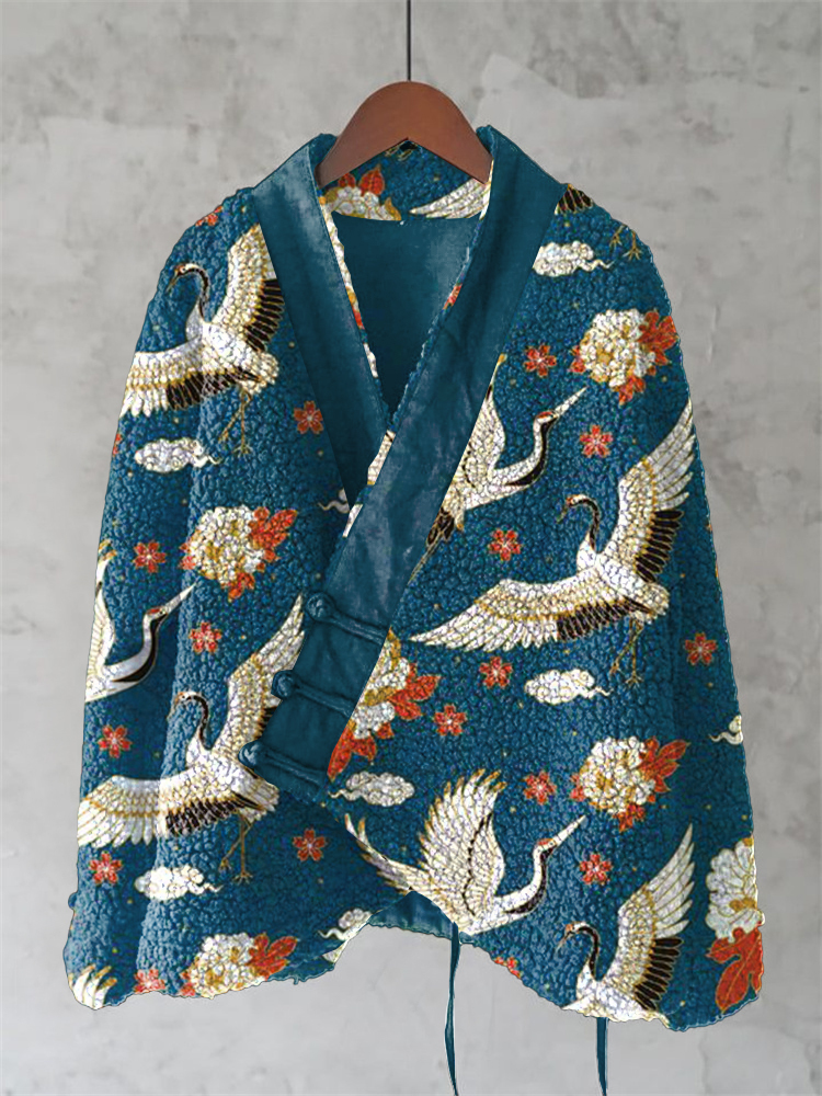 Vintage Japanese Crane Floral Art Wool Kimono Cardigan