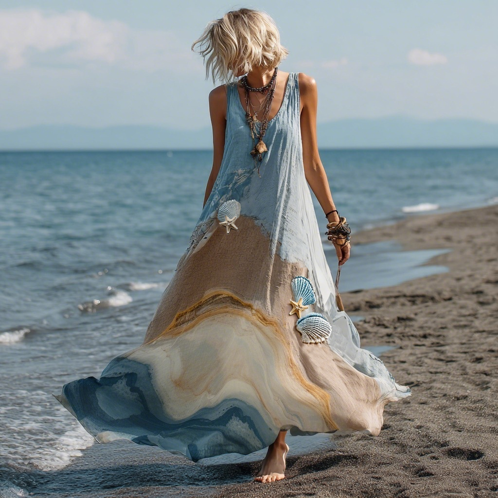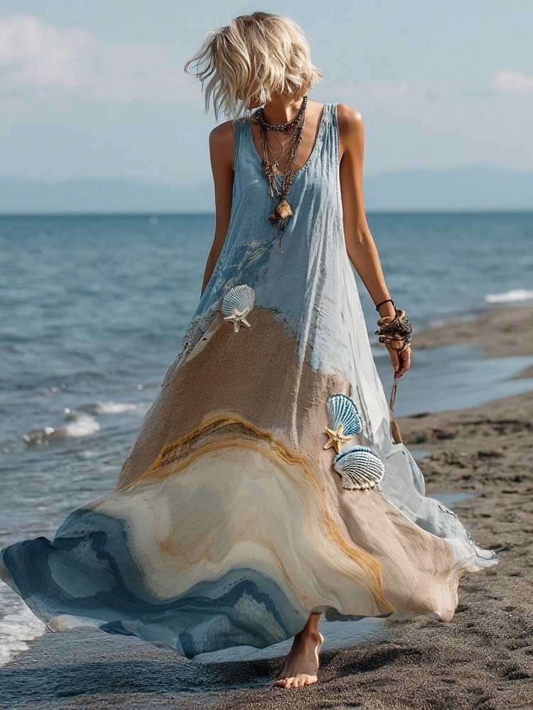 Vintage Marble Texture Collection Inspired By The Ocean Gilded Pattern Linen Maxi Dress