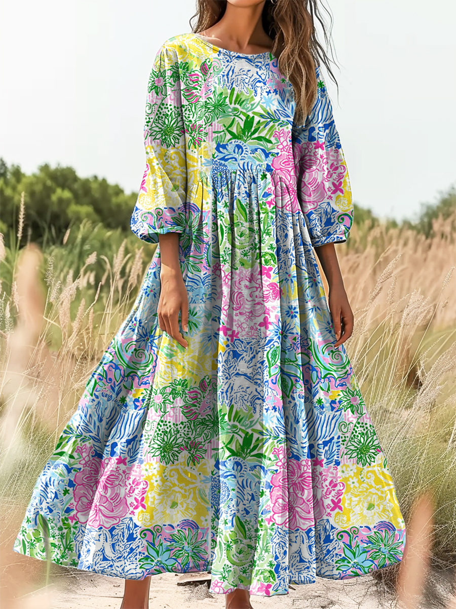 Women's Art Painting Hippie Print Long Sleeve Dress