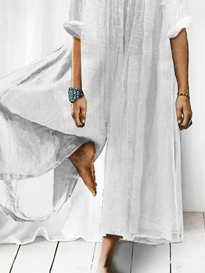 Women'S Casual Solid Color V-Neck Jumpsuit