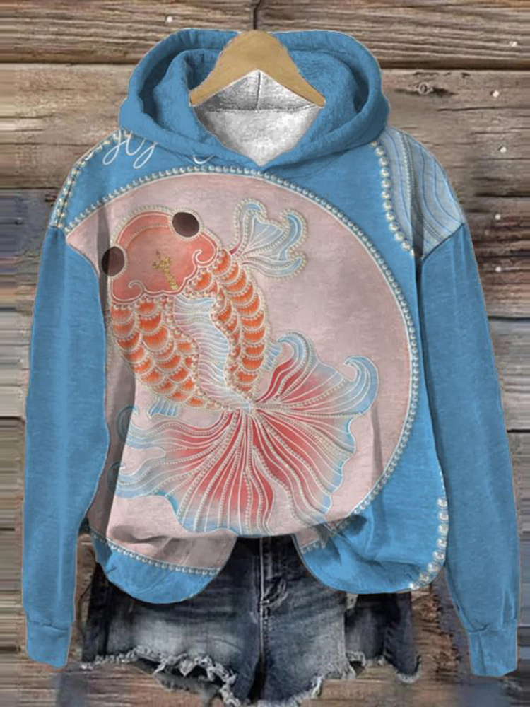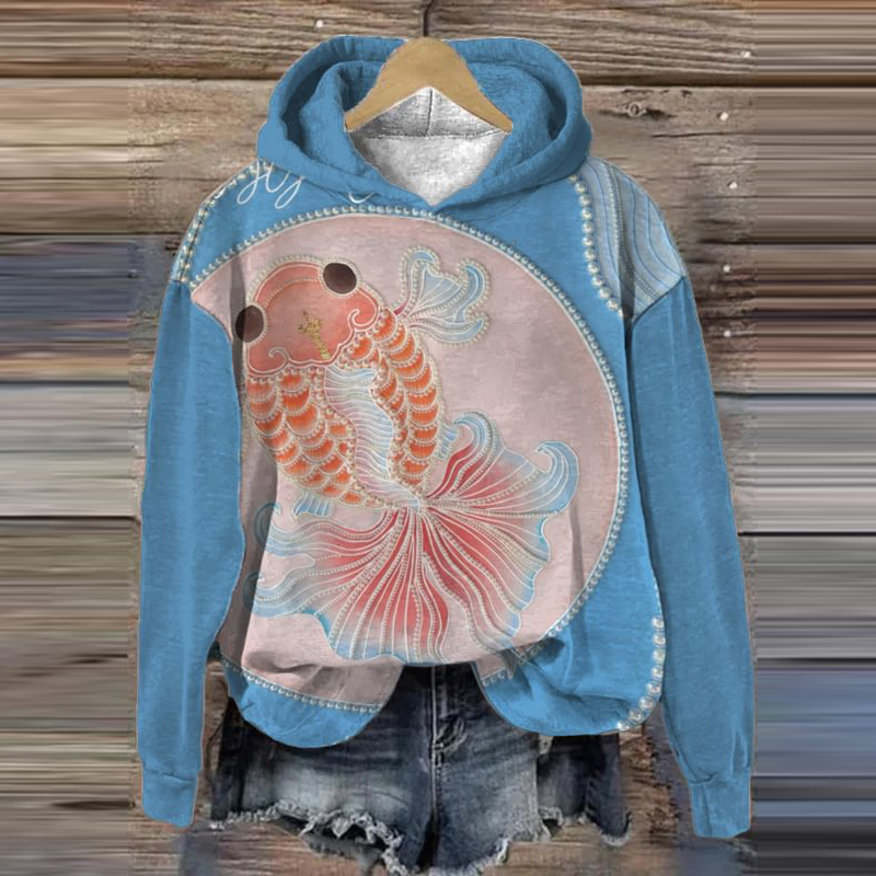 Women's Colorblock Goldfish Pearl Art Print Hoodie